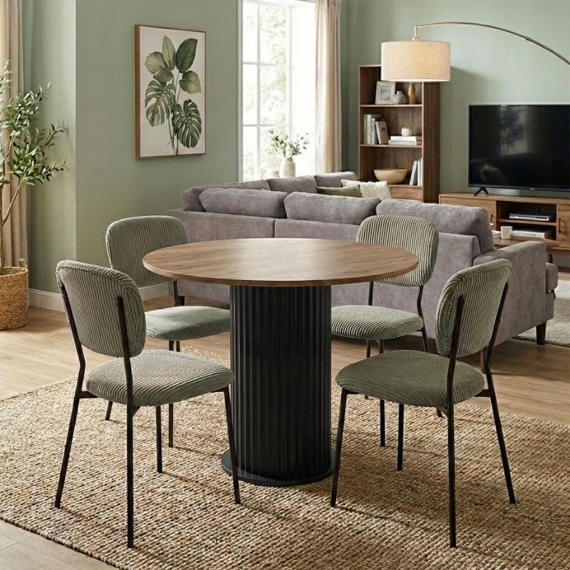 Σετ τραπεζαρία 5τμχ Bohema - Kevin χρώμα μαύρο/sepet oak - λαδί Ø90x77,7εκ.