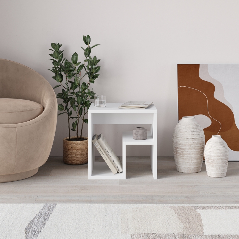 Τραπεζάκι βοηθητικό - Κομοδίνο Bon χρώμα λευκό 40x35x40εκ.