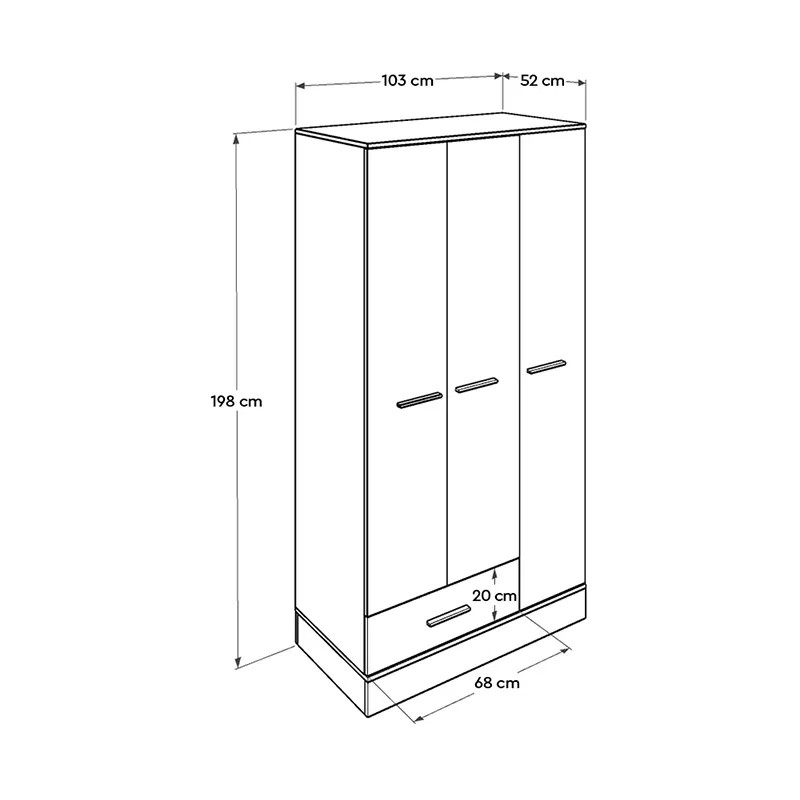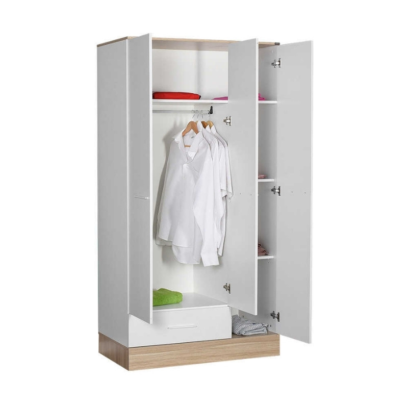 Ντουλάπα ρούχων Base τρίφυλλη με συρτάρια χρώμα λευκό - sonoma 103x52x198εκ.