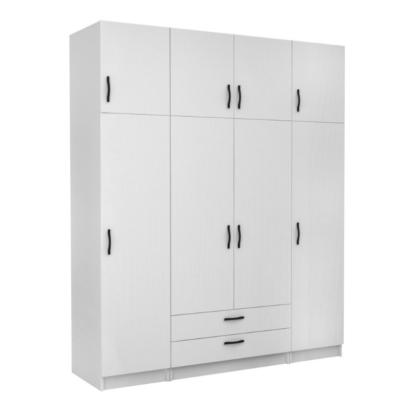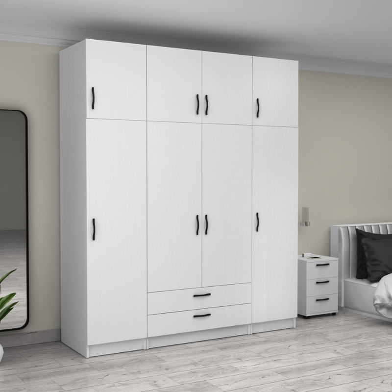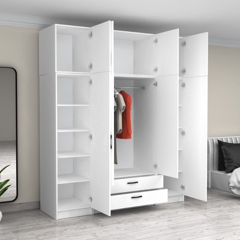 Ντουλάπα ρούχων Victoria τετράφυλλη με πατάρι και συρτάρια χρώμα λευκό 200x60x240εκ.