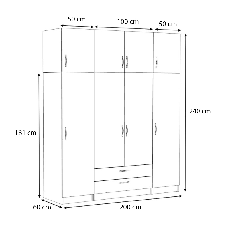 - Διαστάσεις ντουλάπας: Μήκος 100 x Βάθος 60 x Ύψος 240 εκ.