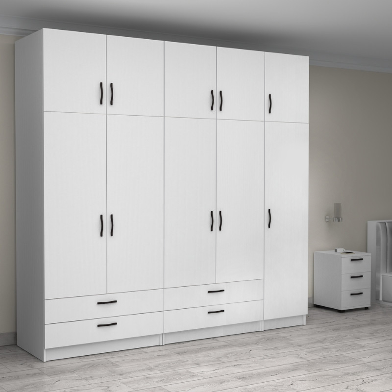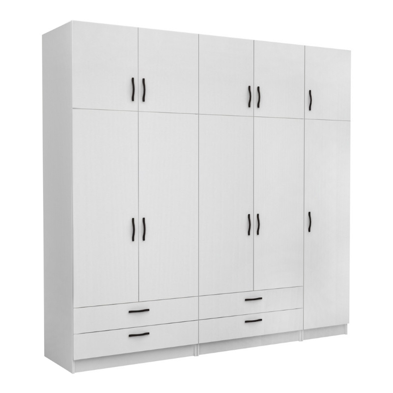 Ντουλάπα ρούχων Victoria πεντάφυλλη με πατάρι και συρτάρια χρώμα λευκό 250x60x240εκ.