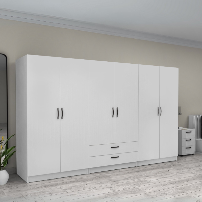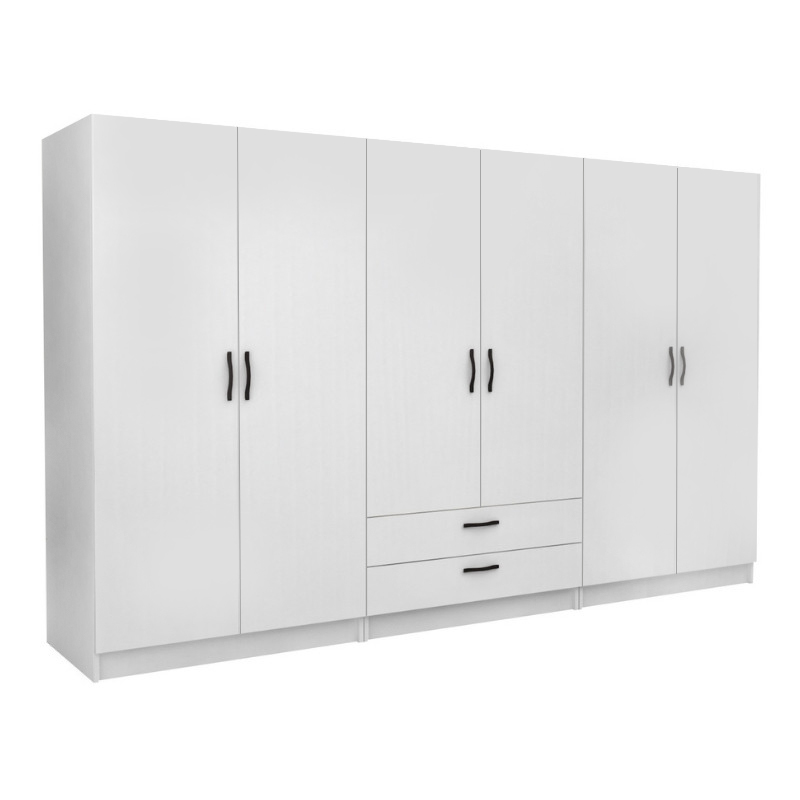 Ντουλάπα ρούχων Victoria εξάφυλλη με συρτάρια χρώμα λευκό 300x60x181εκ.