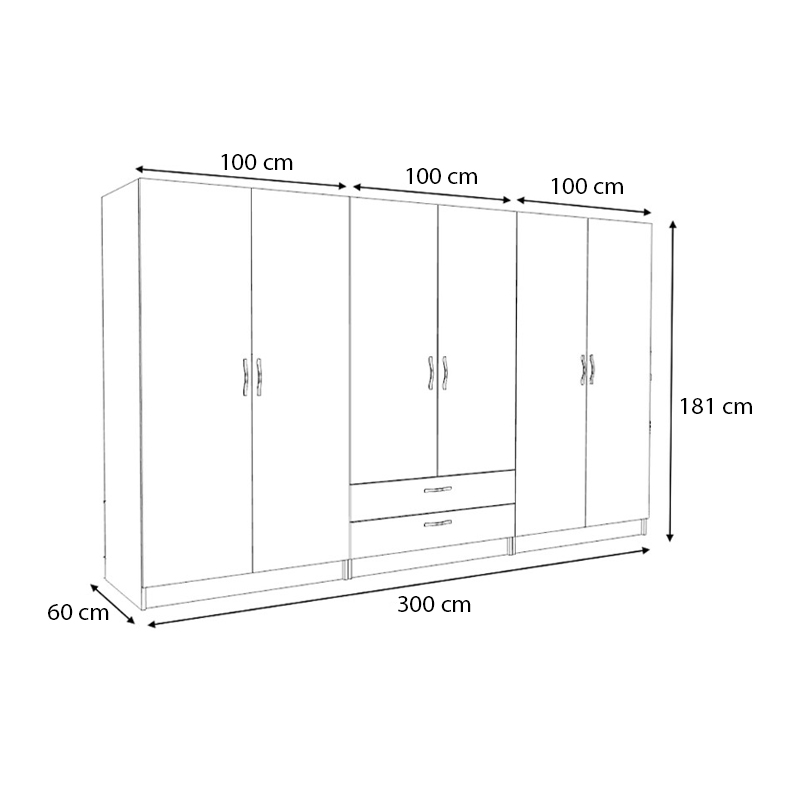 - Διαστάσεις ντουλάπας: Μήκος 300 x Βάθος 60 x Ύψος 181 εκ.