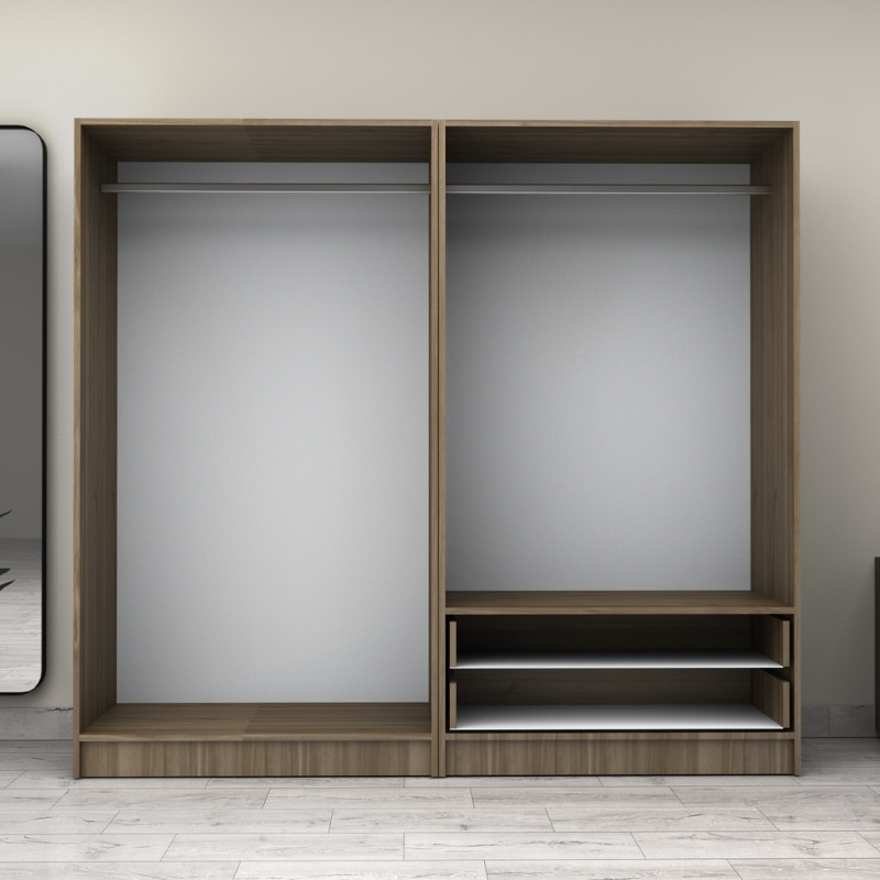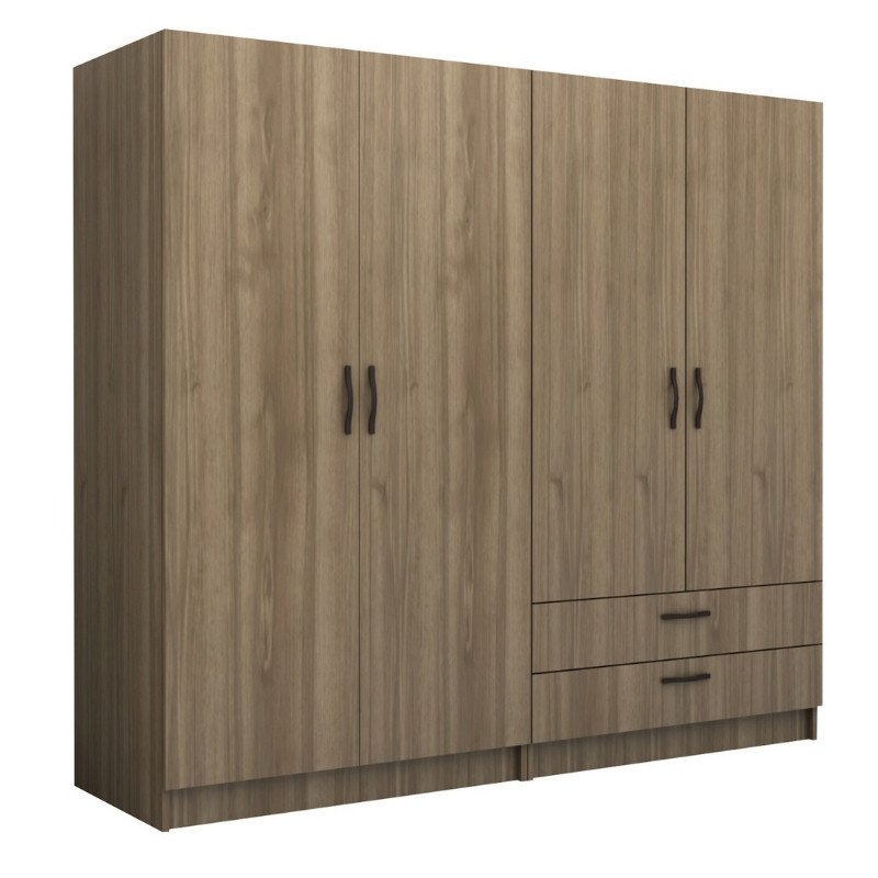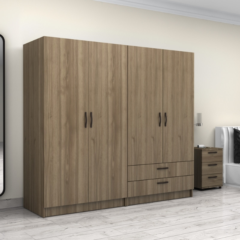 Ντουλάπα ρούχων Victoria τετράφυλλη με συρτάρια χρώμα καρυδί 200x60x181εκ.