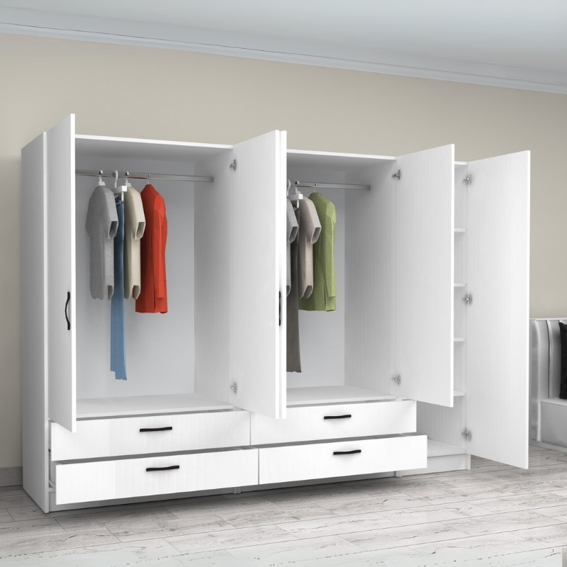 Ντουλάπα ρούχων Victoria πεντάφυλλη με συρτάρια χρώμα λευκό 250x60x181εκ.
