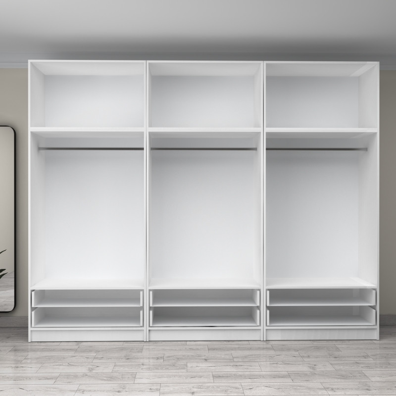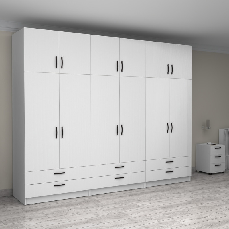Ντουλάπα ρούχων Victoria εξάφυλλη με πατάρι και συρτάρια χρώμα λευκό 300x60x240εκ.