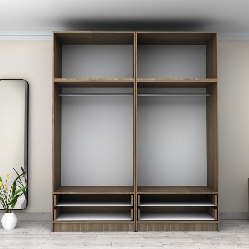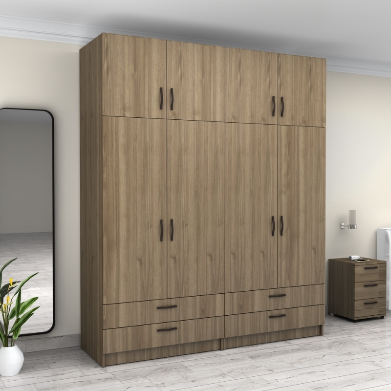 Ντουλάπα ρούχων Victoria τετράφυλλη με πατάρι και συρτάρια χρώμα καρυδί 200x60x240εκ.