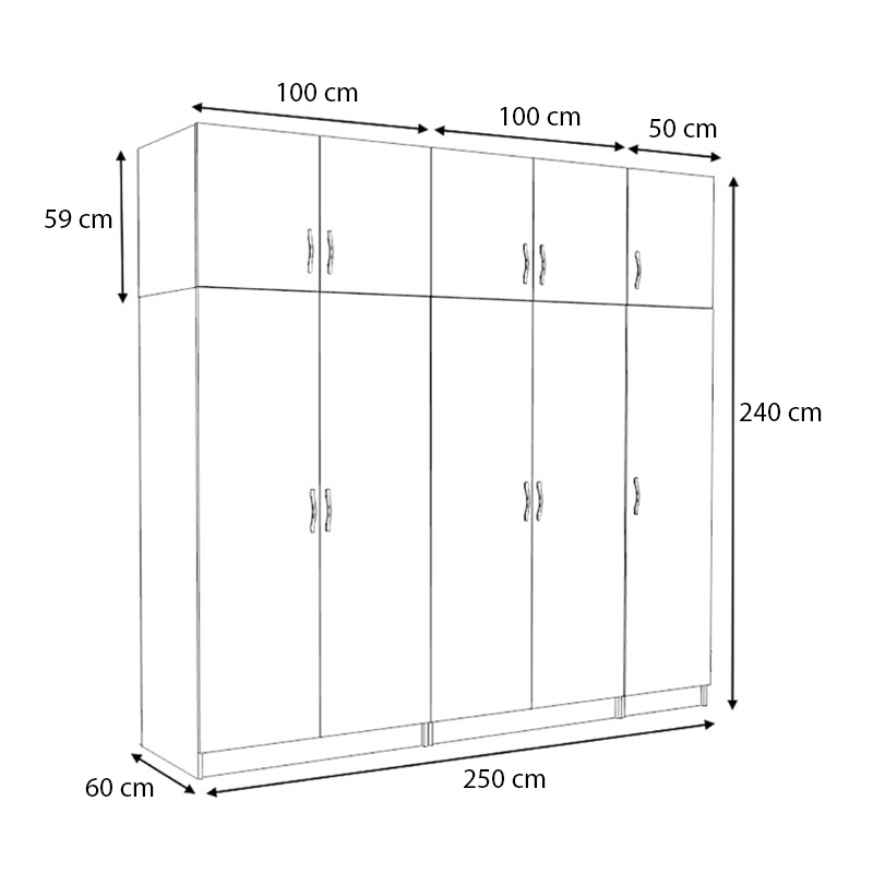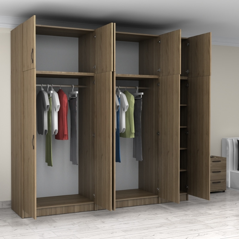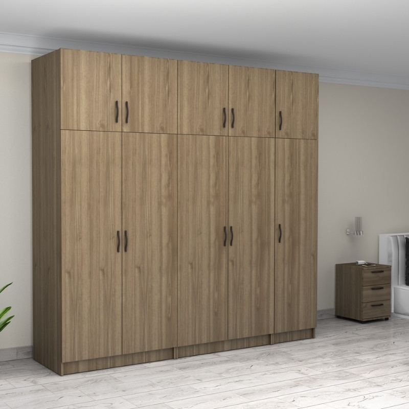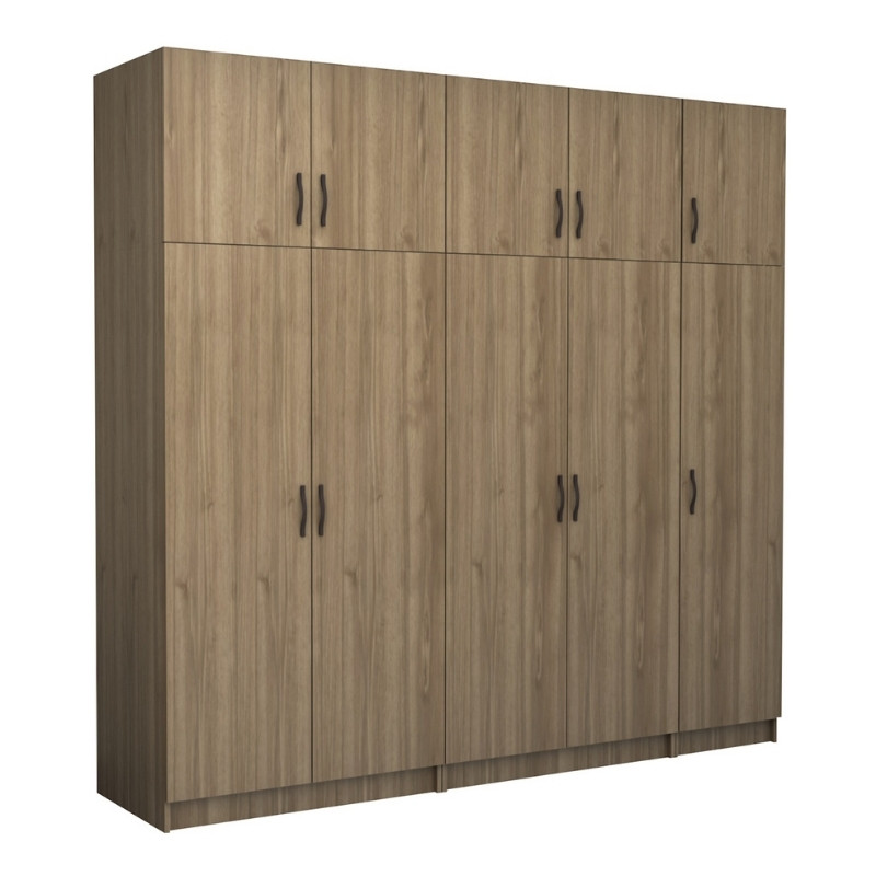 Ντουλάπα ρούχων Victoria πεντάφυλλη με πατάρι χρώμα καρυδί 250x60x240εκ.