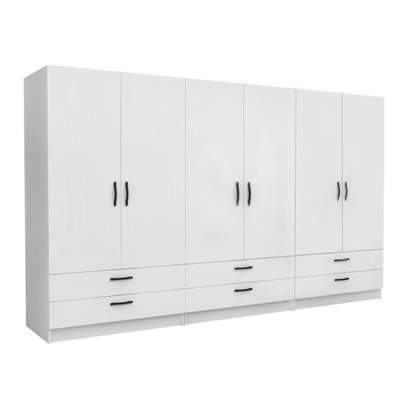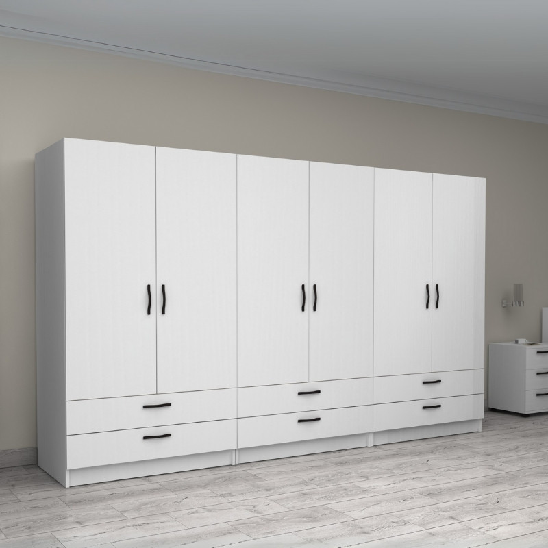Ντουλάπα ρούχων Victoria εξάφυλλη με συρτάρια χρώμα λευκό 300x60x181εκ.