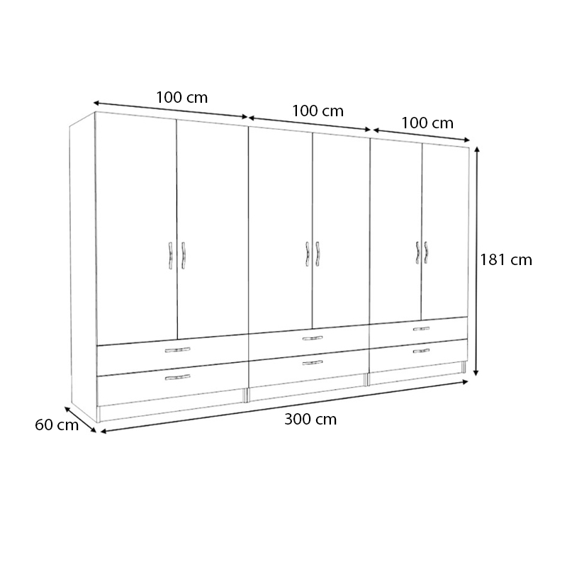 - Διαστάσεις ντουλάπας: Μήκος 300 x Βάθος 60 x Ύψος 181 εκ.