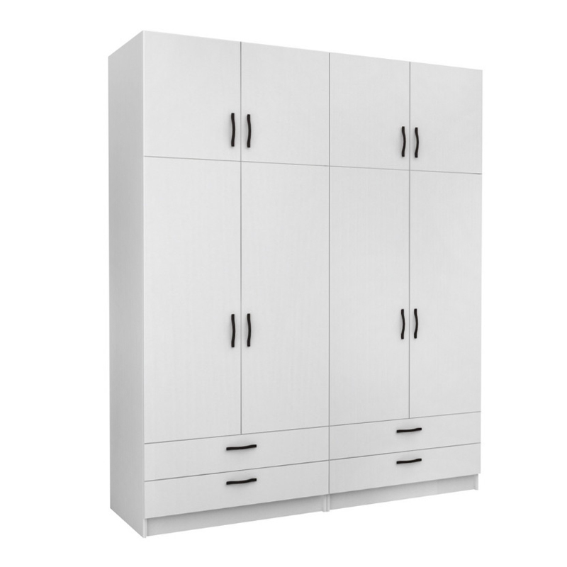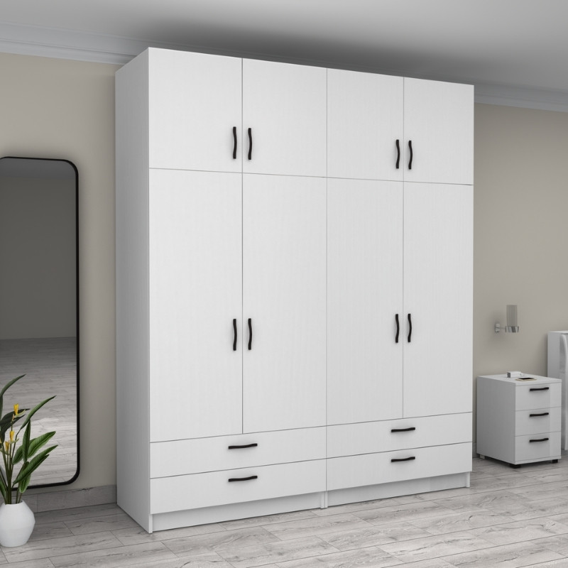 Ντουλάπα ρούχων Victoria τετράφυλλη με πατάρι και συρτάρια χρώμα λευκό 200x60x240εκ.