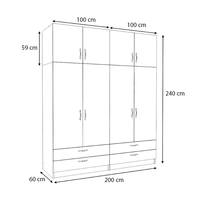 - Διαστάσεις ντουλάπας: Μήκος 200 x Βάθος 60 x Ύψος 181 εκ.