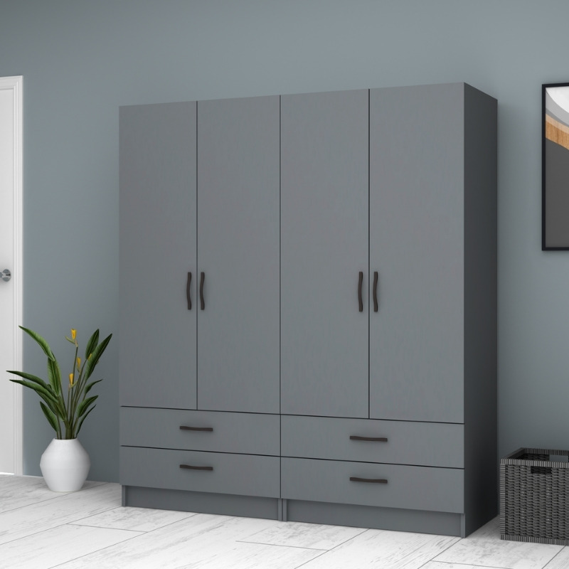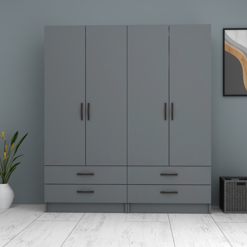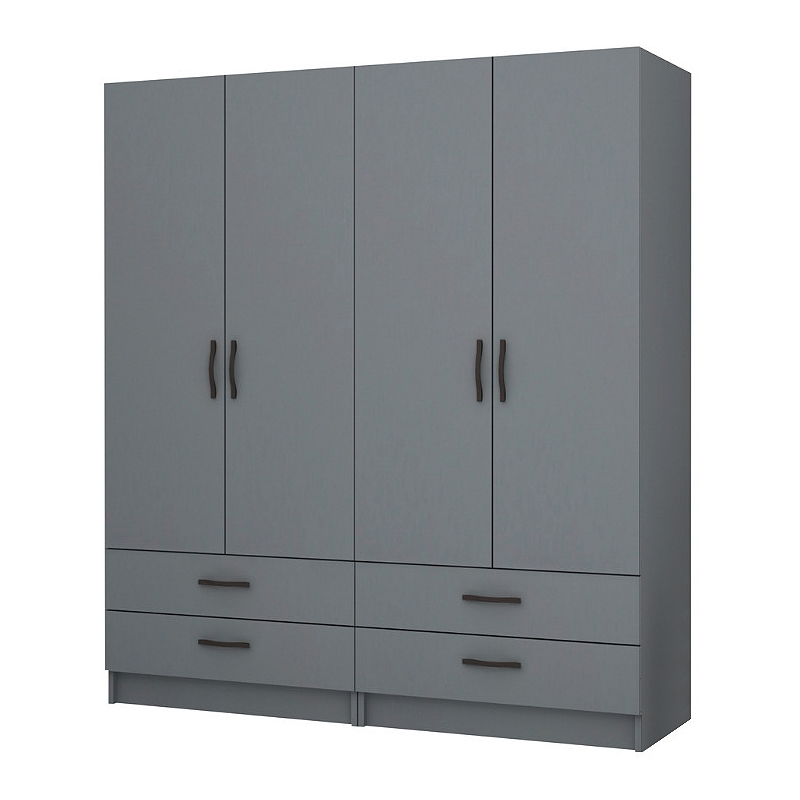 Ντουλάπα ρούχων Ricardo τετράφυλλη με συρτάρια χρώμα ανθρακί 160x51,8x181εκ.