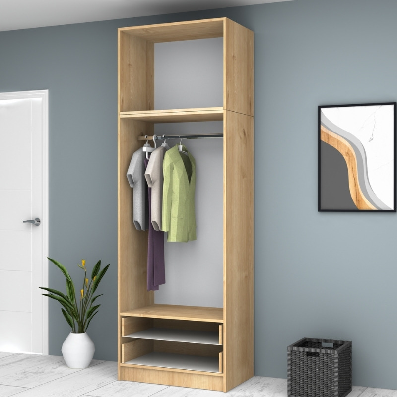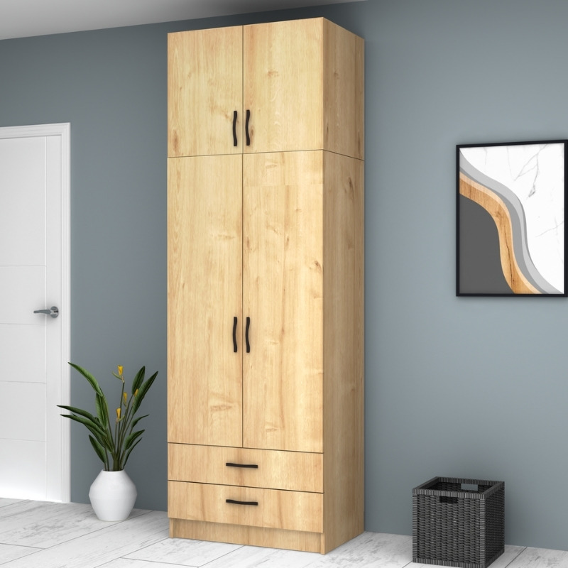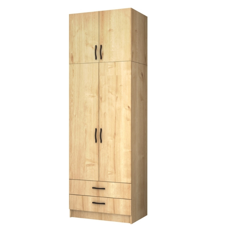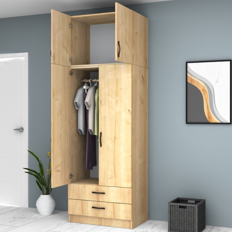 Ντουλάπα ρούχων Ricardo δίφυλλη με πατάρι και συρτάρια χρώμα φυσικό οξιάς 80x51,8x240εκ.