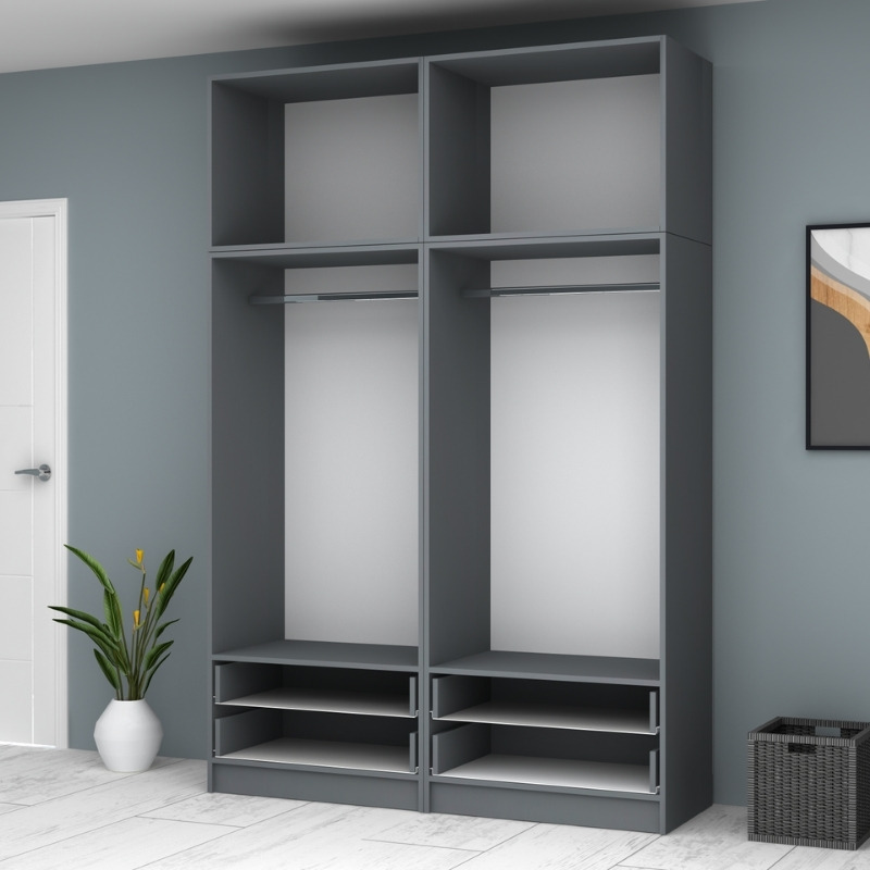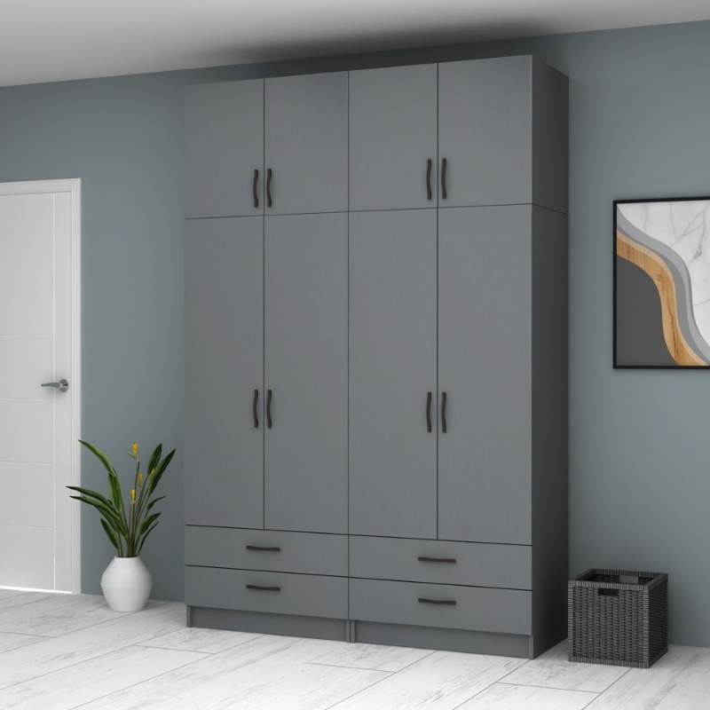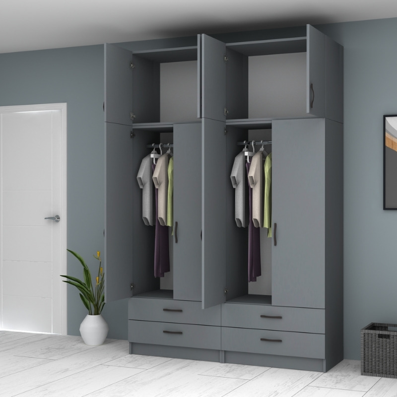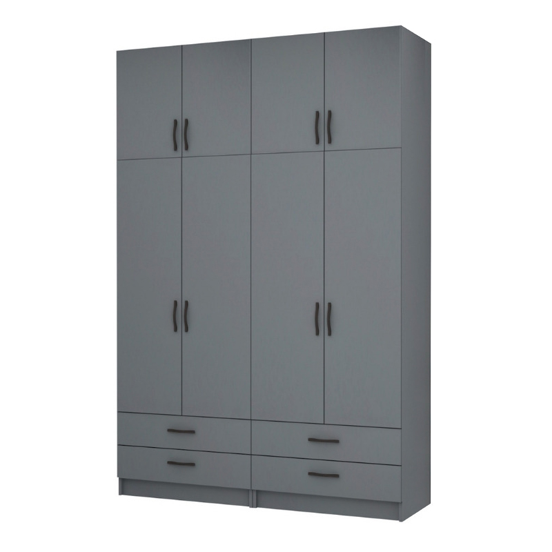Ντουλάπα ρούχων Ricardo τετράφυλλη με πατάρι και συρτάρια χρώμα ανθρακί 160x51,8x240εκ.