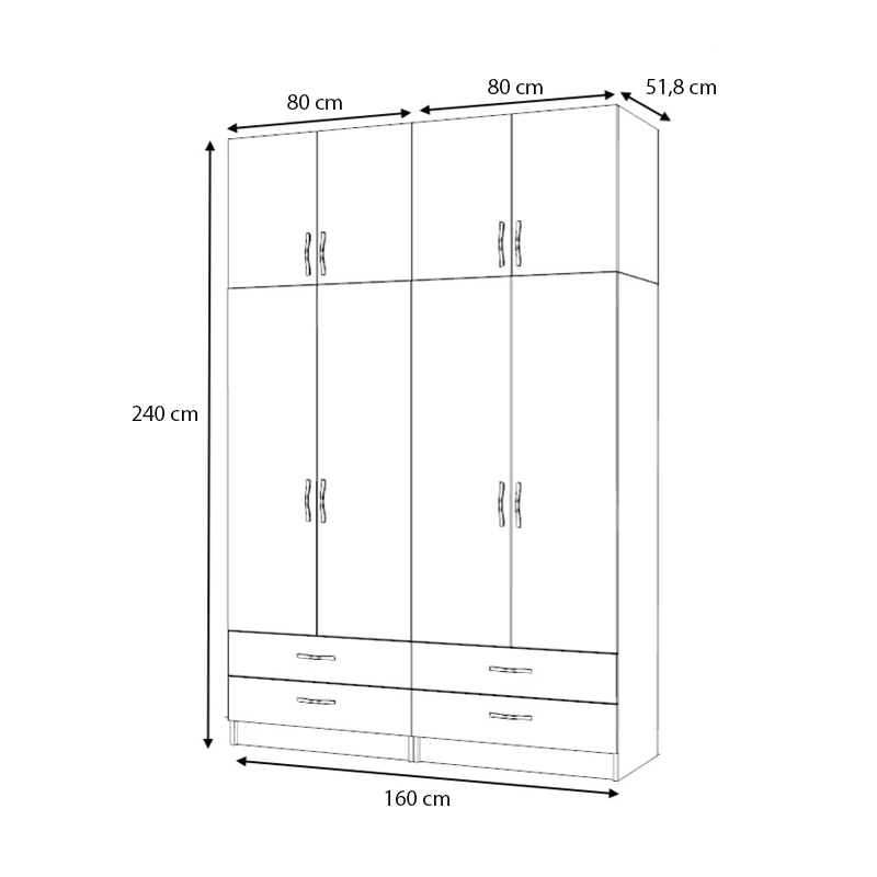 - Διαστάσεις ντουλάπας: Μήκος 160 x Βάθος 51,8 x Ύψος 181 εκ.
