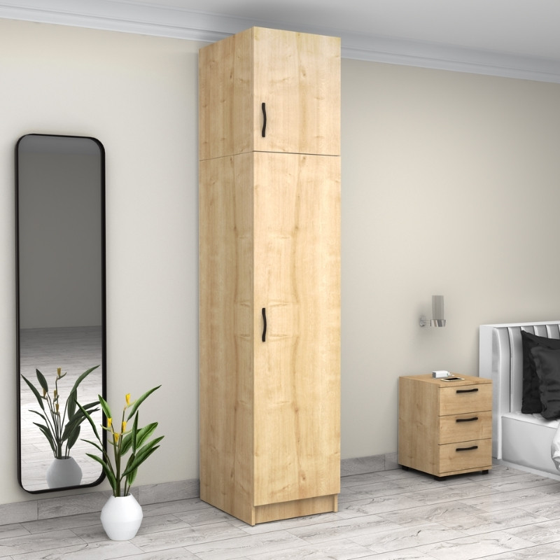 Ντουλάπα ρούχων Victoria μονόφυλλη με πατάρι χρώμα φυσικό οξιάς 50x60x240εκ.
