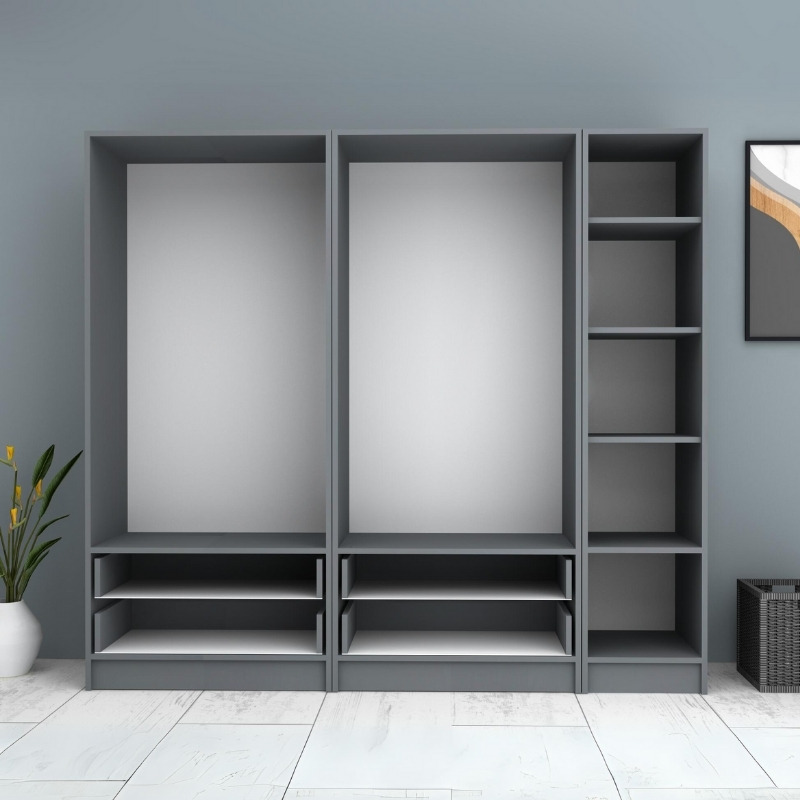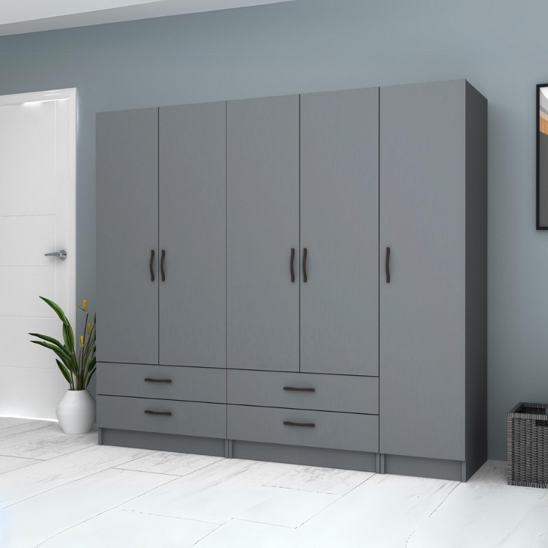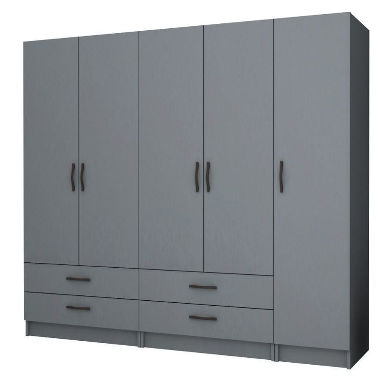 Ντουλάπα ρούχων Ricardo πεντάφυλλη με συρτάρια χρώμα ανθρακί 200x51,8x181εκ.