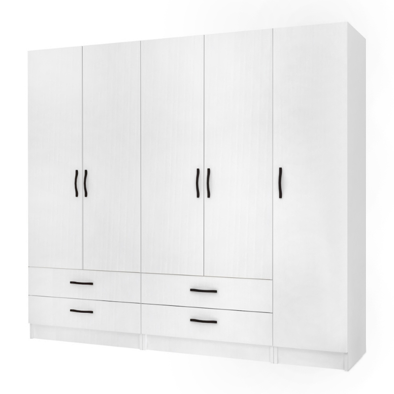 Ντουλάπα ρούχων Ricardo πεντάφυλλη με συρτάρια χρώμα λευκό 200x51,8x181εκ.