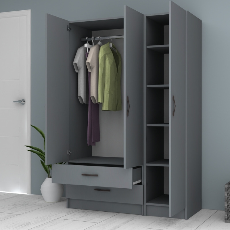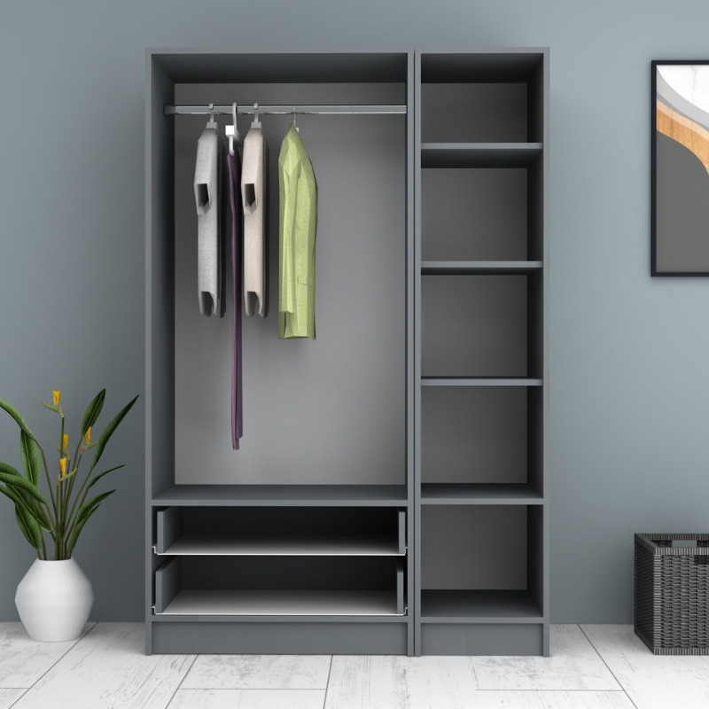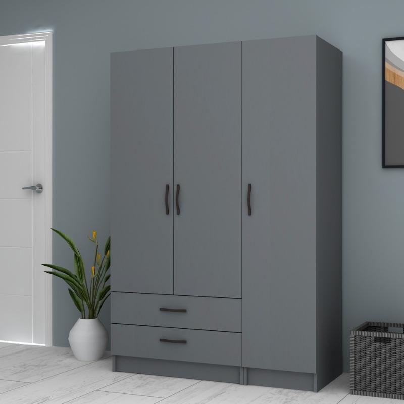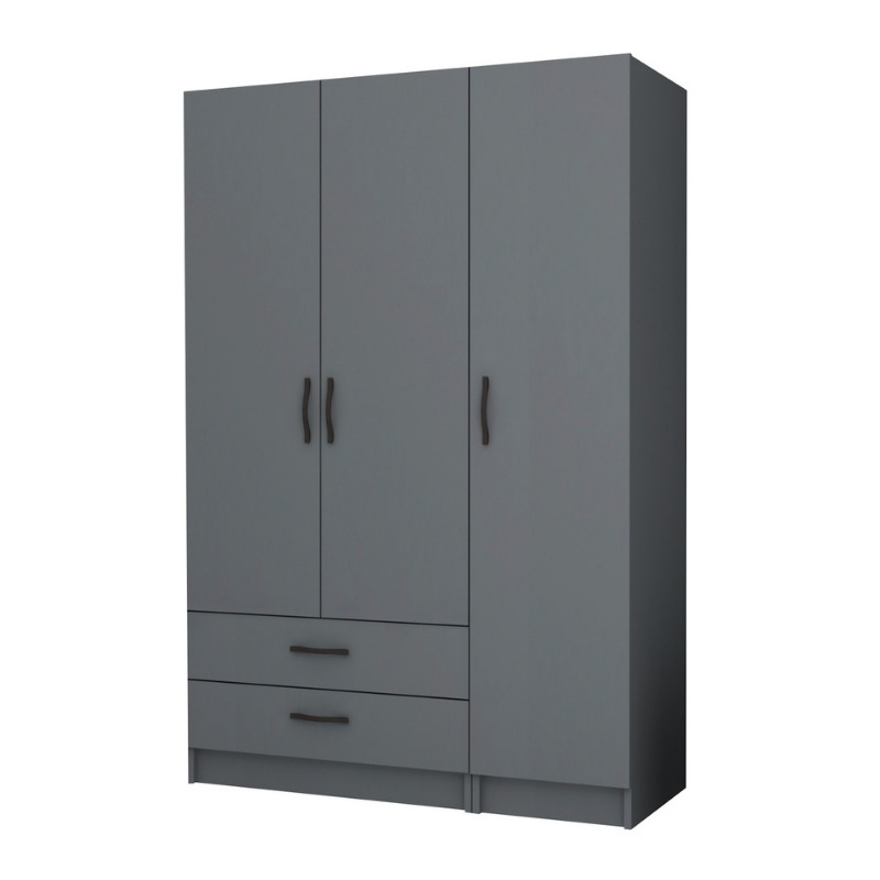 Ντουλάπα ρούχων Ricardo τρίφυλλη με συρτάρια χρώμα ανθρακί 120x51,8x181εκ.