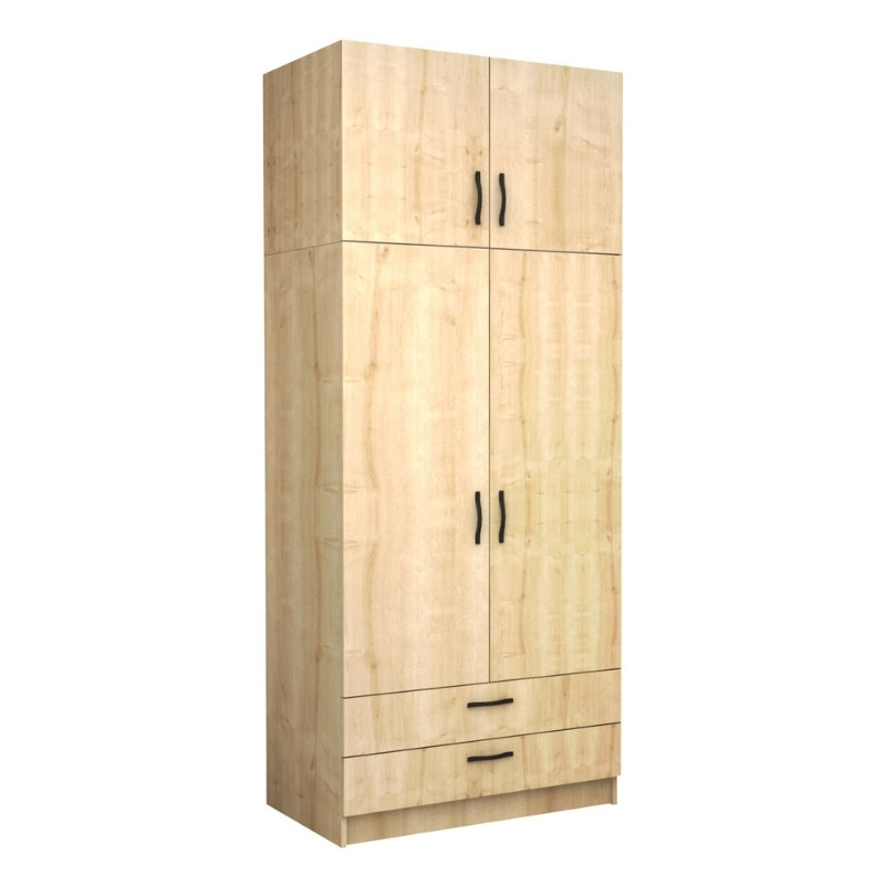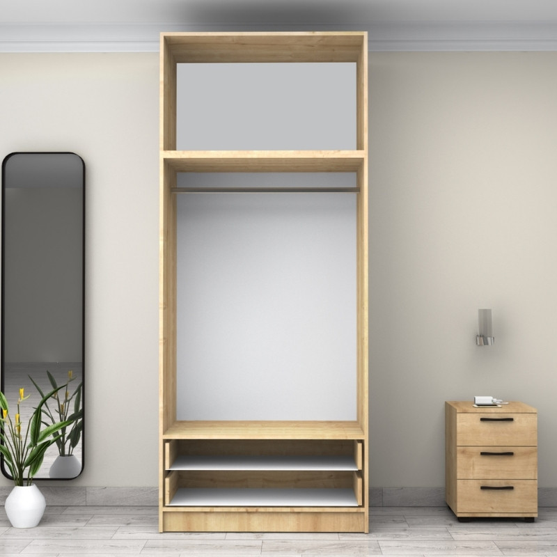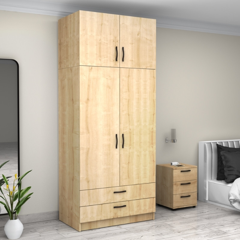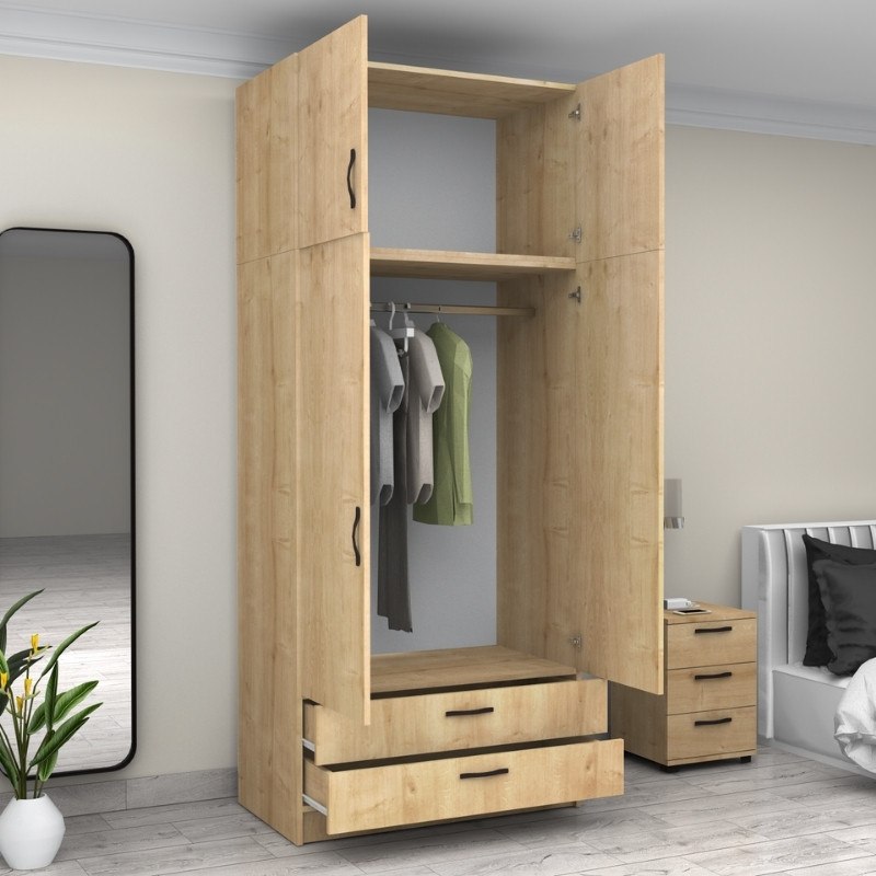 Ντουλάπα ρούχων Victoria δίφυλλη με πατάρι και συρτάρια χρώμα φυσικό οξιάς 100x60x240εκ.
