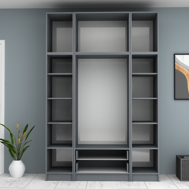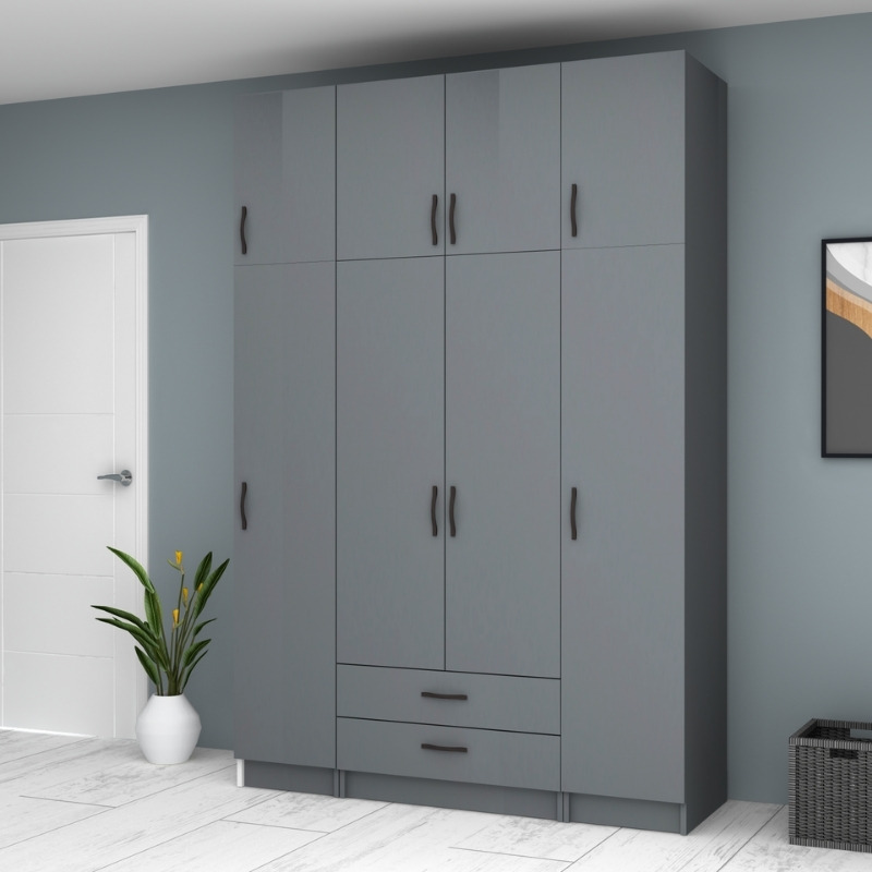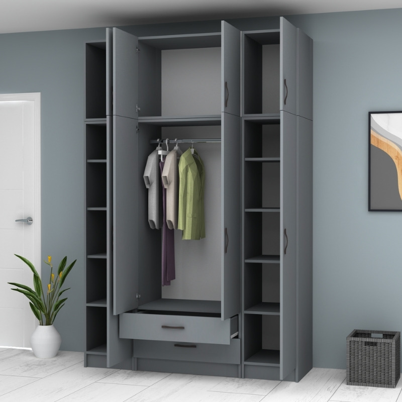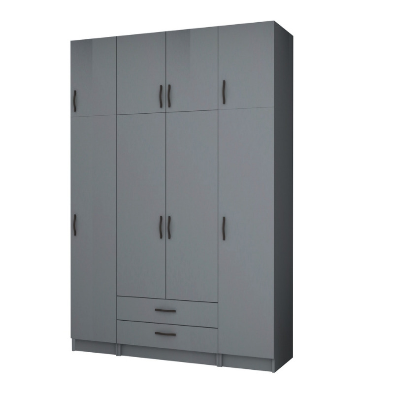 Ντουλάπα ρούχων Ricardo τετράφυλλη με πατάρι και συρτάρια χρώμα ανθρακί 160x51,8x240εκ.
