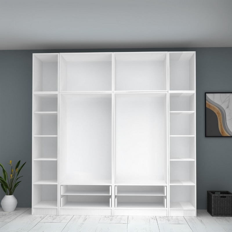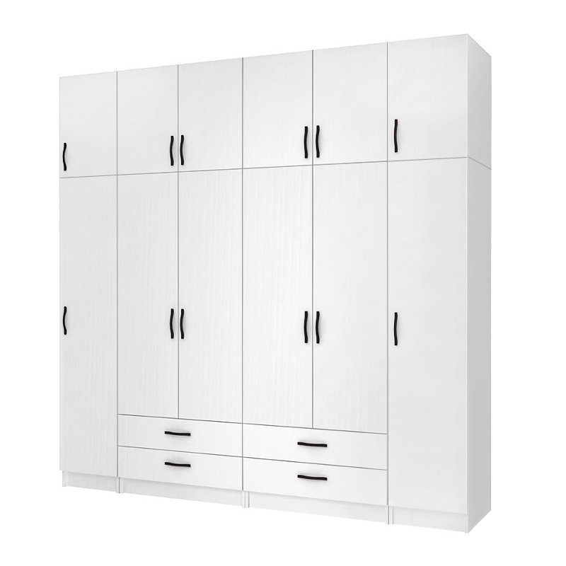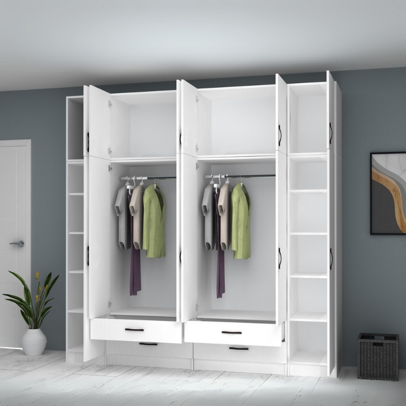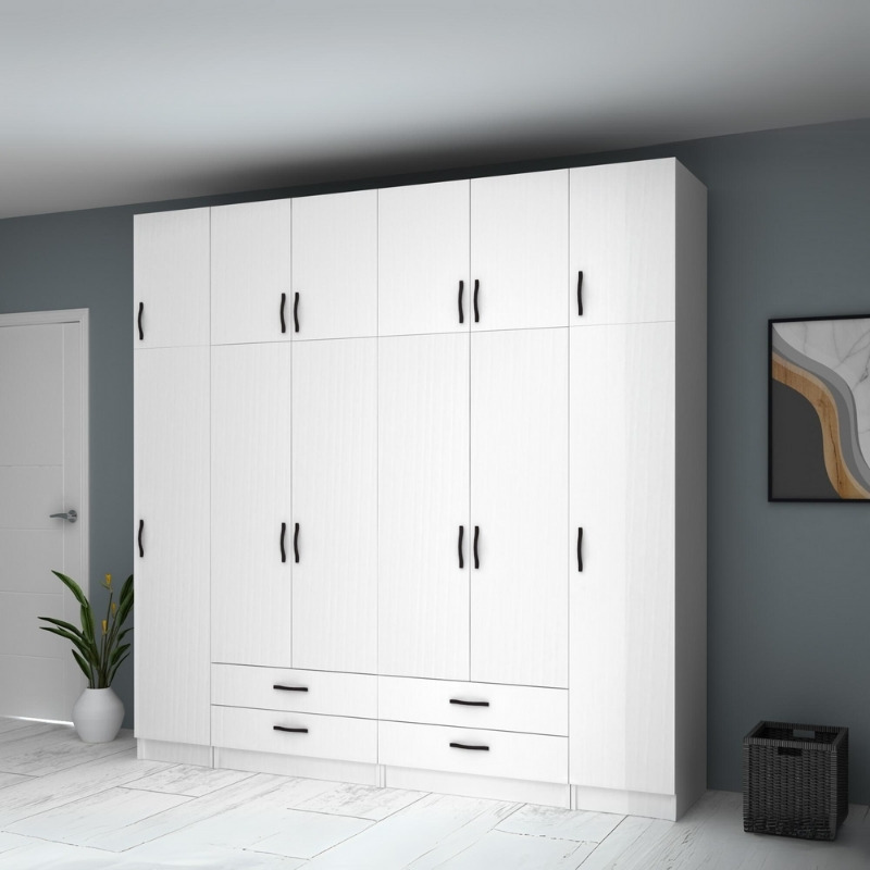 Ντουλάπα ρούχων Ricardo εξάφυλλη με πατάρι και συρτάρια χρώμα λευκό 240x51,8x240εκ.