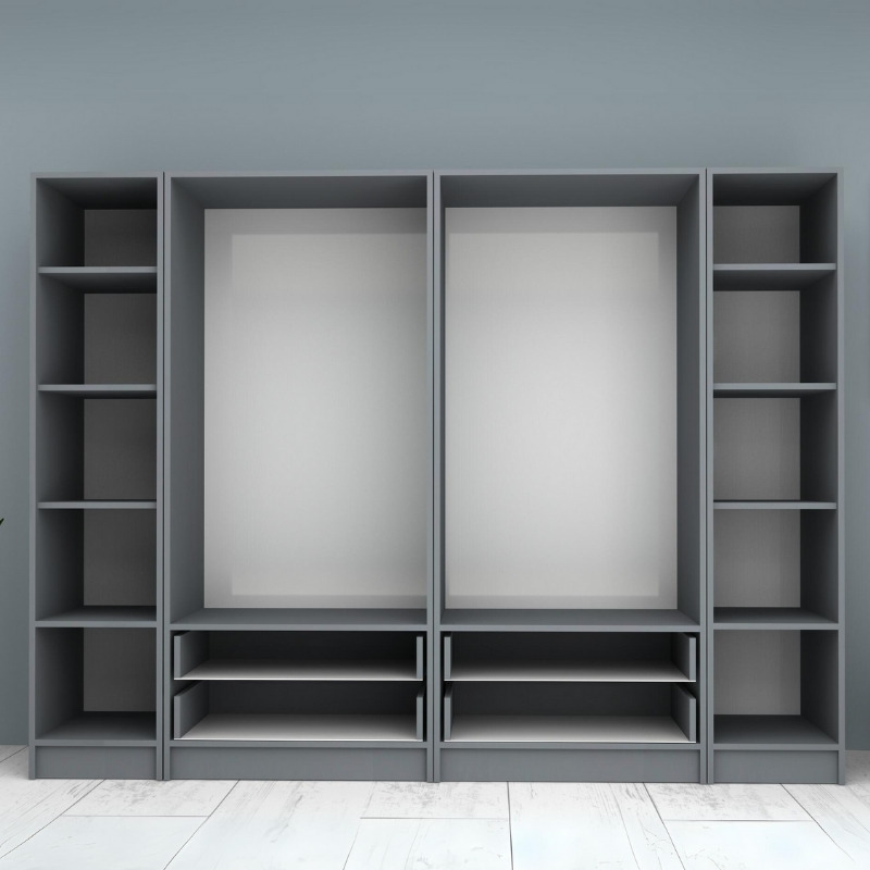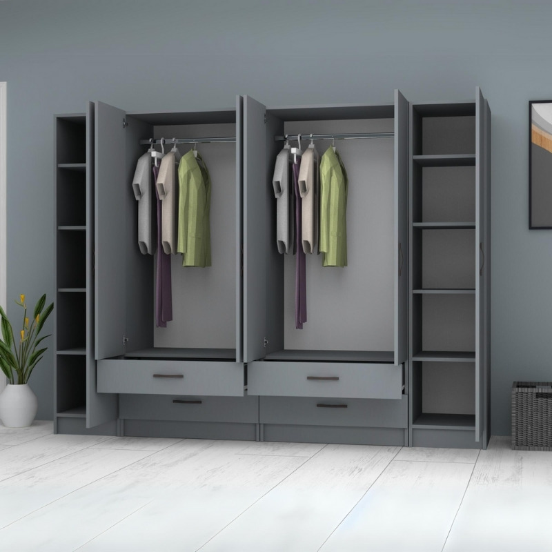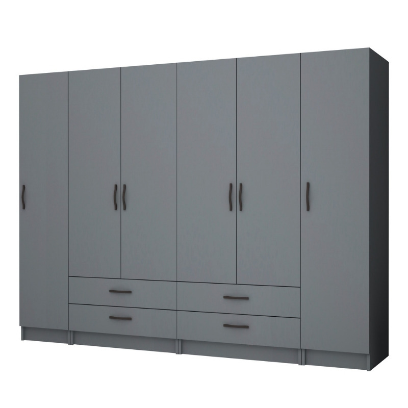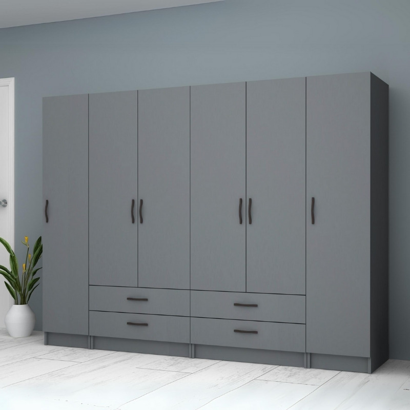 Ντουλάπα ρούχων Ricardo εξάφυλλη με συρτάρια χρώμα ανθρακί 240x51,8x181εκ.