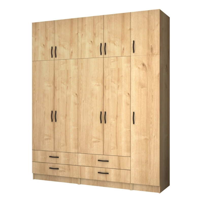 Ντουλάπα ρούχων Ricardo πεντάφυλλη με πατάρι και συρτάρια χρώμα φυσικό οξιάς 200x51,8x240εκ.