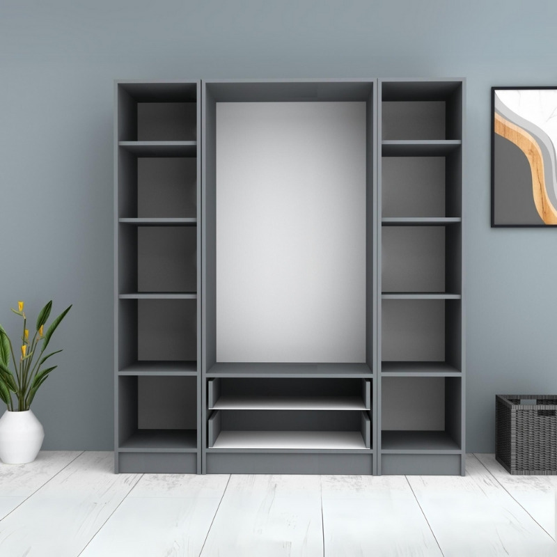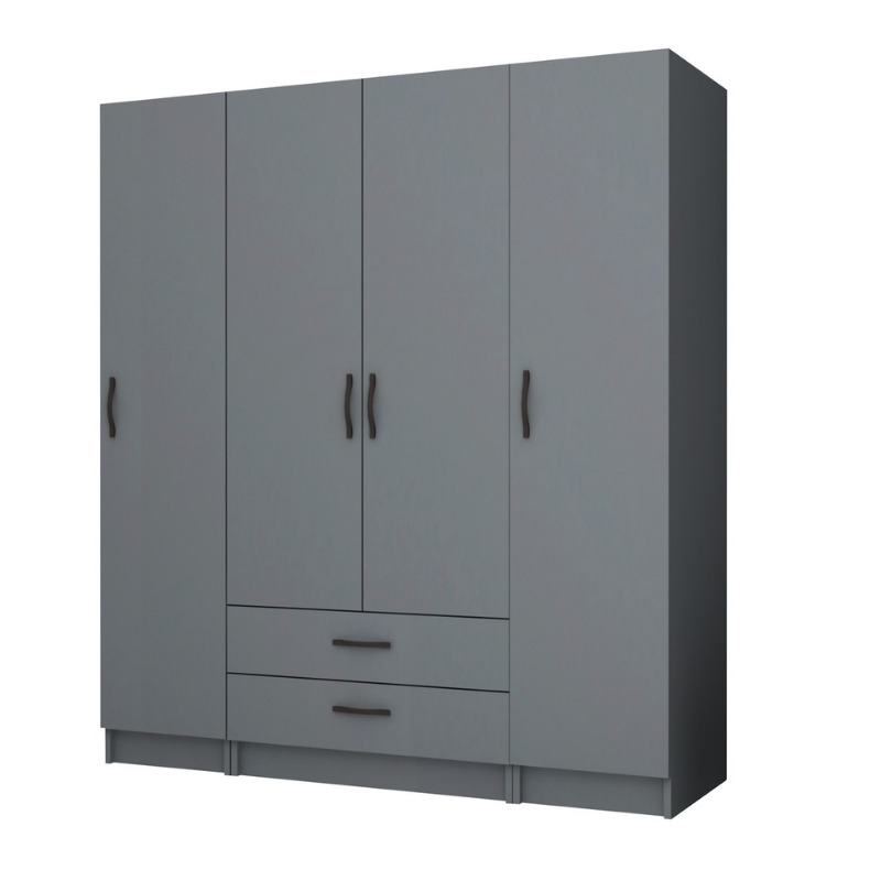Ντουλάπα ρούχων Ricardo τετράφυλλη με συρτάρια χρώμα ανθρακί 160x51,8x181εκ.