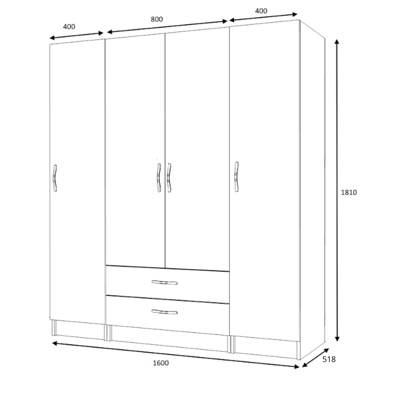 - Διαστάσεις ντουλάπας: Μήκος 160 x Βάθος 51,8 x Ύψος 181 εκ.