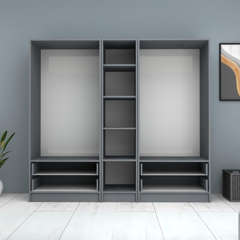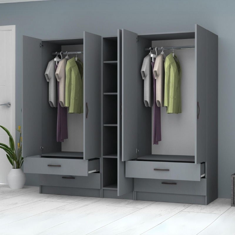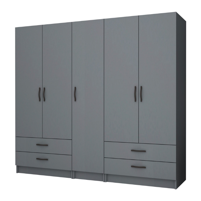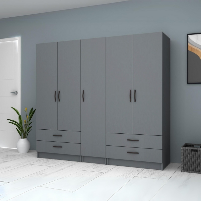 Ντουλάπα ρούχων Ricardo πεντάφυλλη με συρτάρια χρώμα ανθρακί 200x51,8x181εκ.