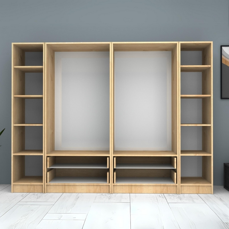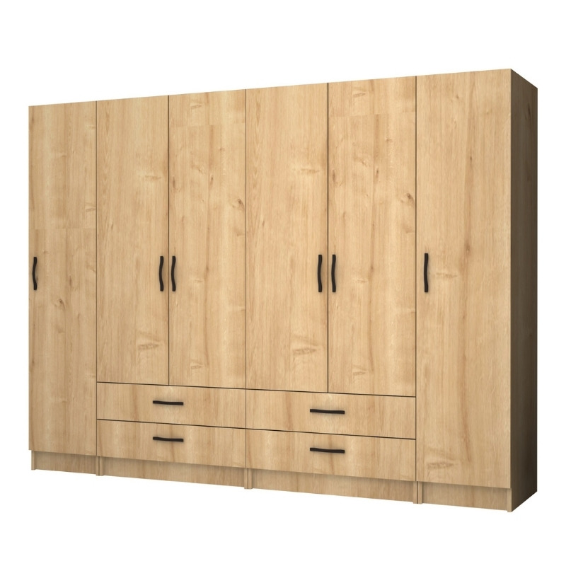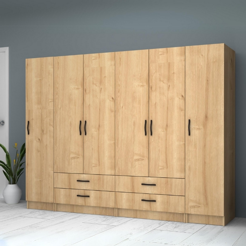Ντουλάπα ρούχων Ricardo εξάφυλλη με συρτάρια χρώμα φυσικό οξιάς 240x51,8x181εκ.