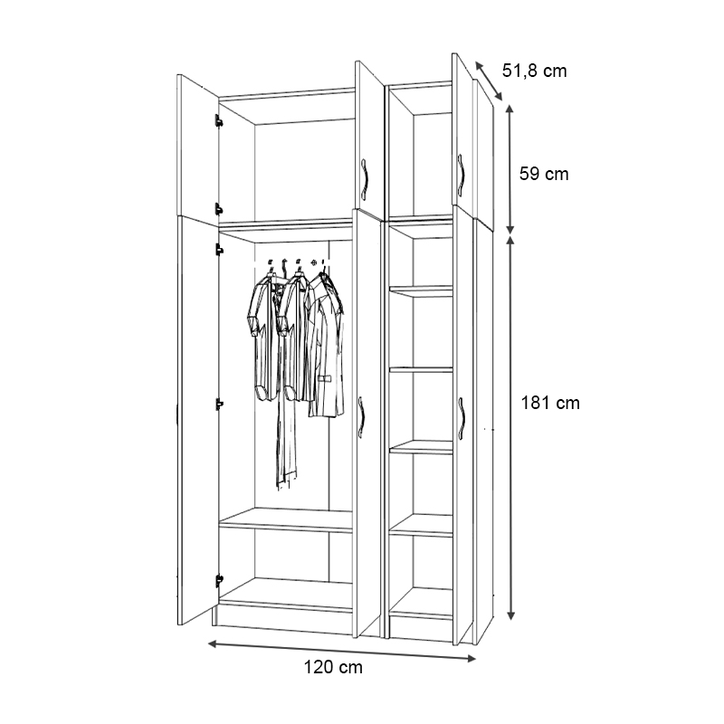 Ντουλάπα ρούχων Vivian τρίφυλλη με πατάρι χρώμα λευκό 120x51,8x240εκ.
