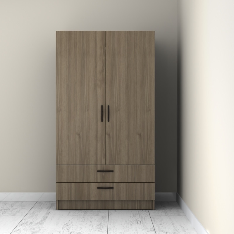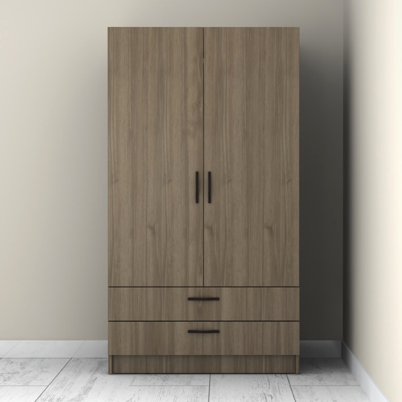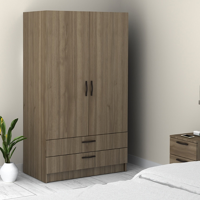 Ντουλάπα ρούχων Victoria δίφυλλη με συρτάρια χρώμα καρυδί 100x60x181εκ.
