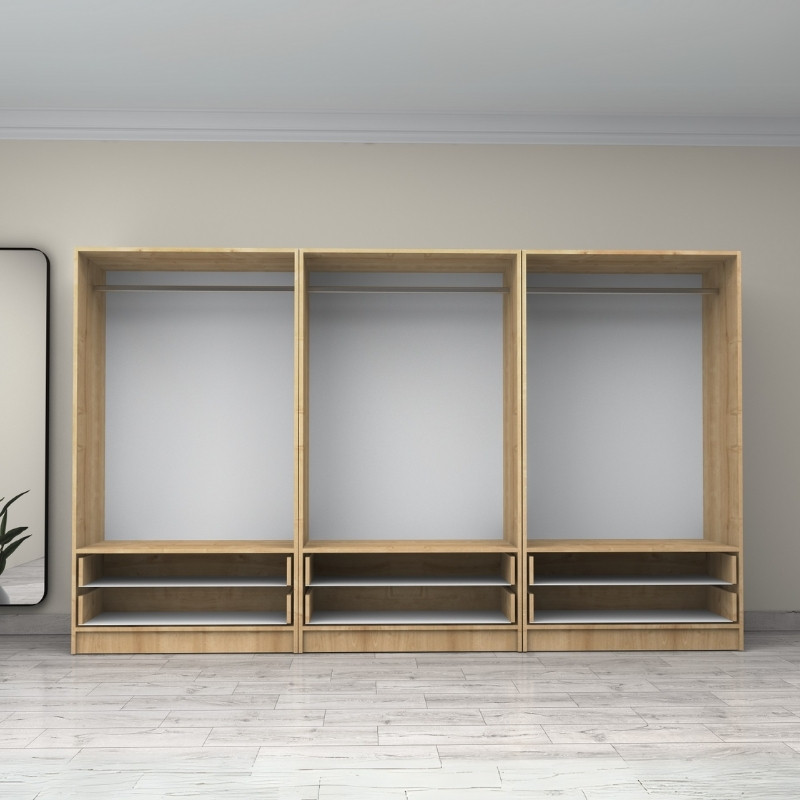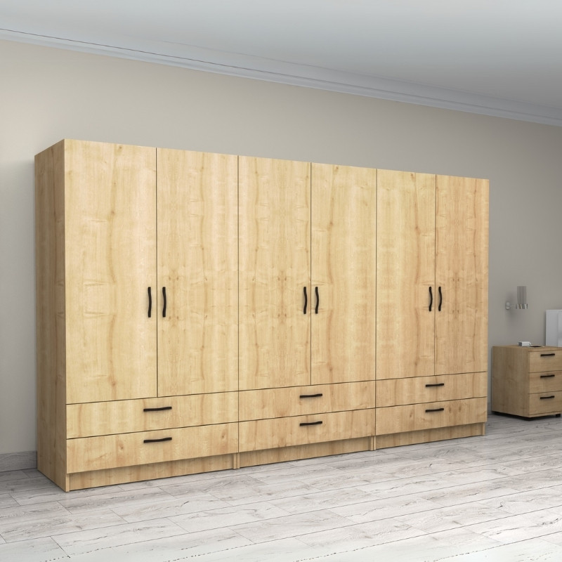 Ντουλάπα ρούχων Victoria εξάφυλλη με συρτάρια χρώμα φυσικό οξιάς 300x60x181εκ.