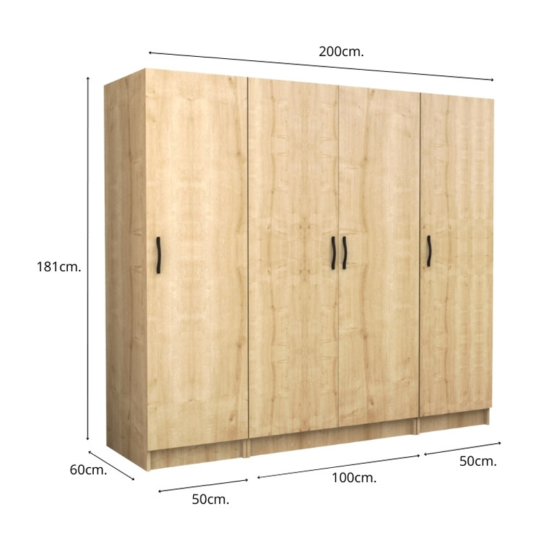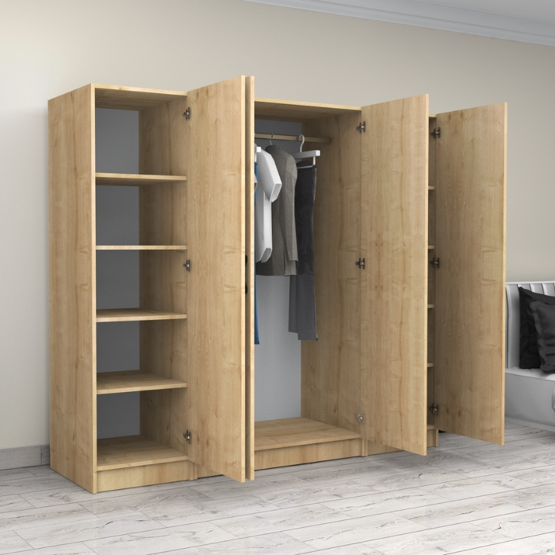 Ντουλάπα ρούχων Victoria τετράφυλλη χρώμα φυσικό οξιάς 200x60x181εκ.