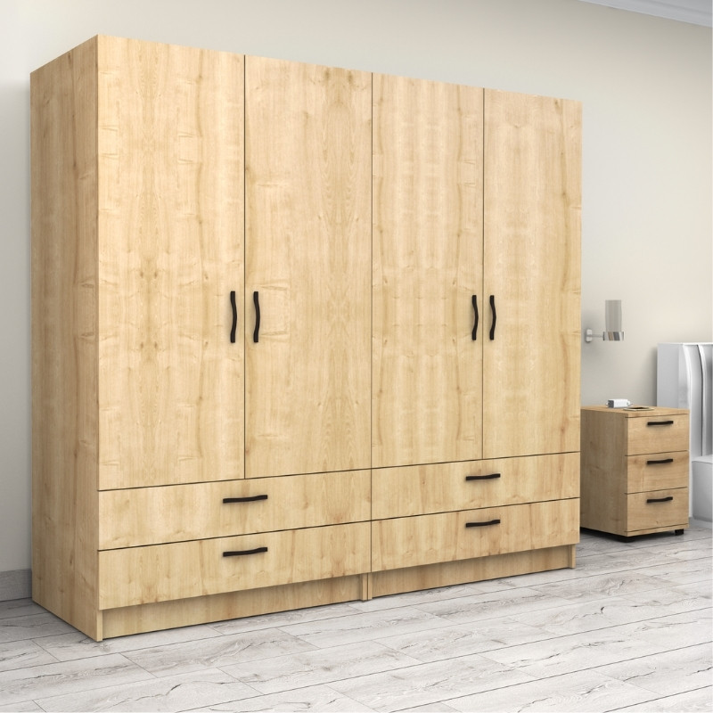 Ντουλάπα ρούχων Victoria τετράφυλλη με συρτάρια χρώμα φυσικό οξιάς 200x60x181εκ.