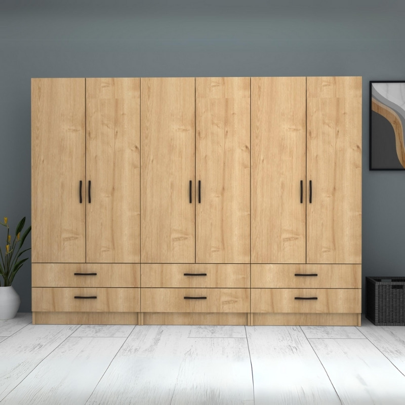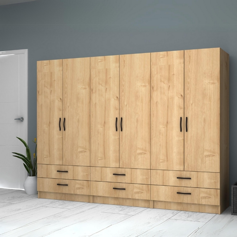 Ντουλάπα ρούχων Ricardo εξάφυλλη με συρτάρια χρώμα φυσικό οξιάς 240x51,8x181εκ.