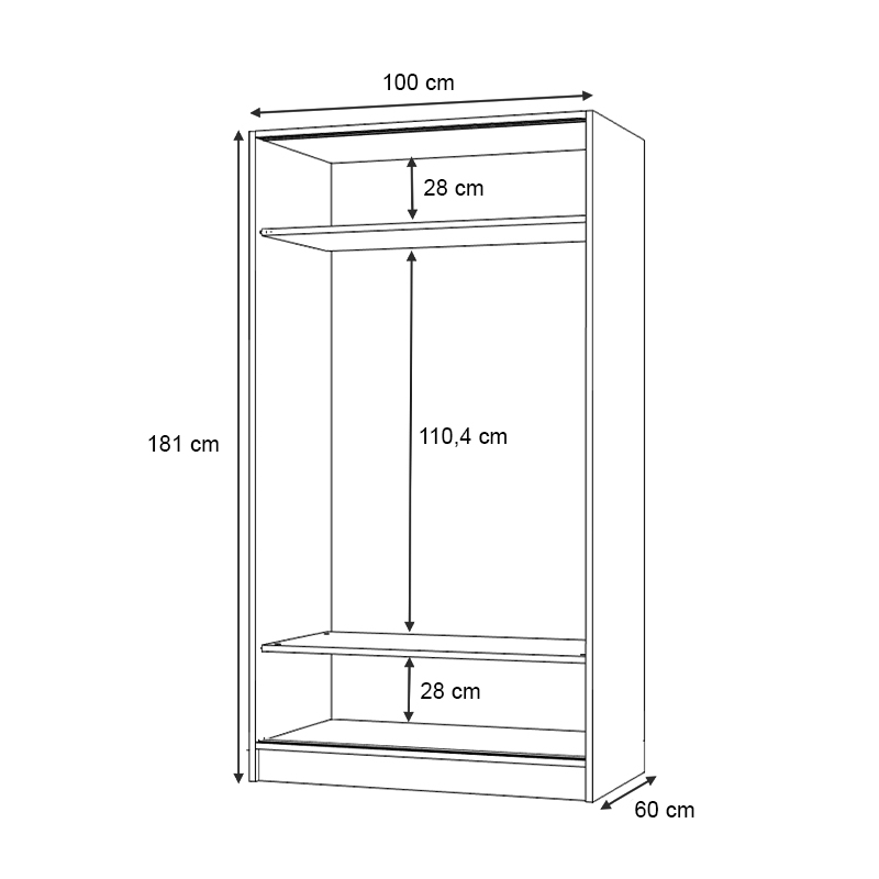 Ντουλάπα ρούχων Regio δίφυλλη συρόμενη χρώμα λευκό 100x60x181εκ.