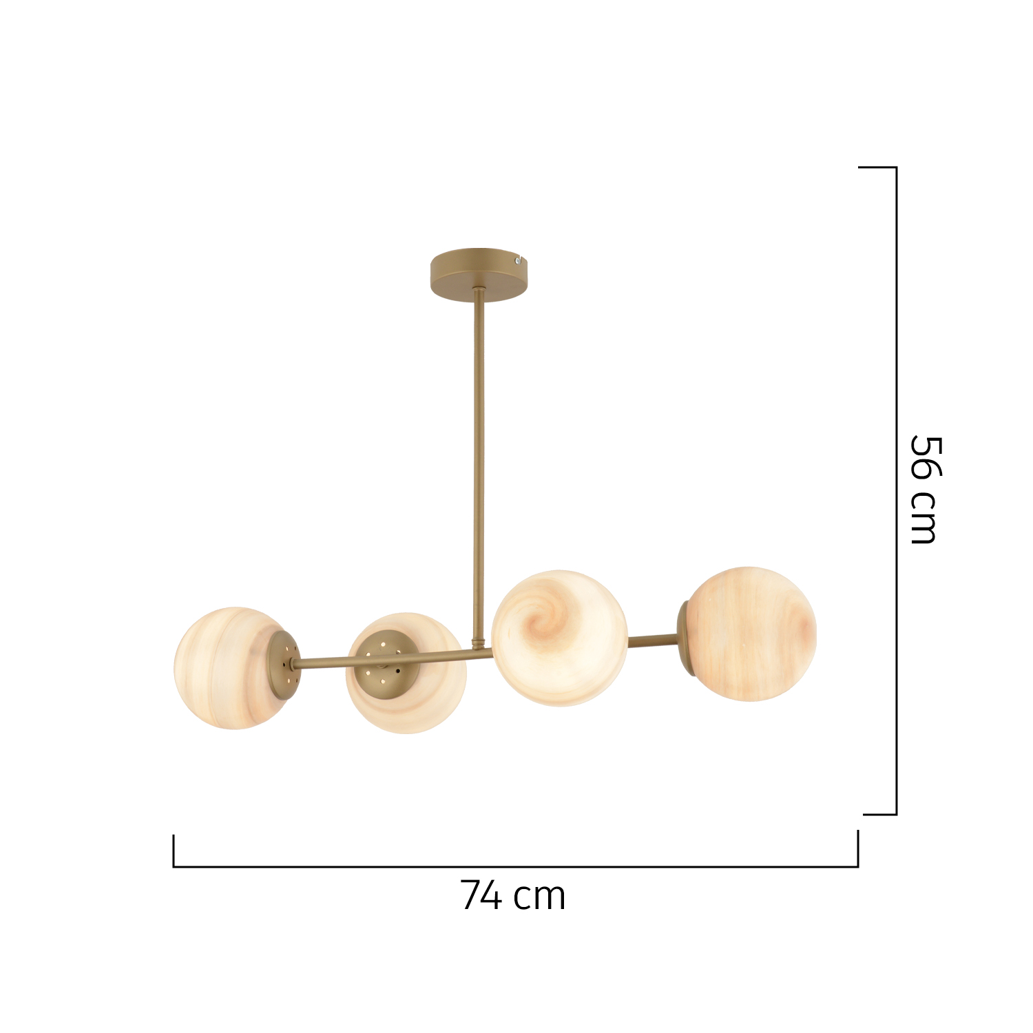 Φωτιστικό Κρεμαστό CHAMAELEON Τετράφωτο Χρυσό/Μελί Μέταλλο/Γυαλί 74x56cm