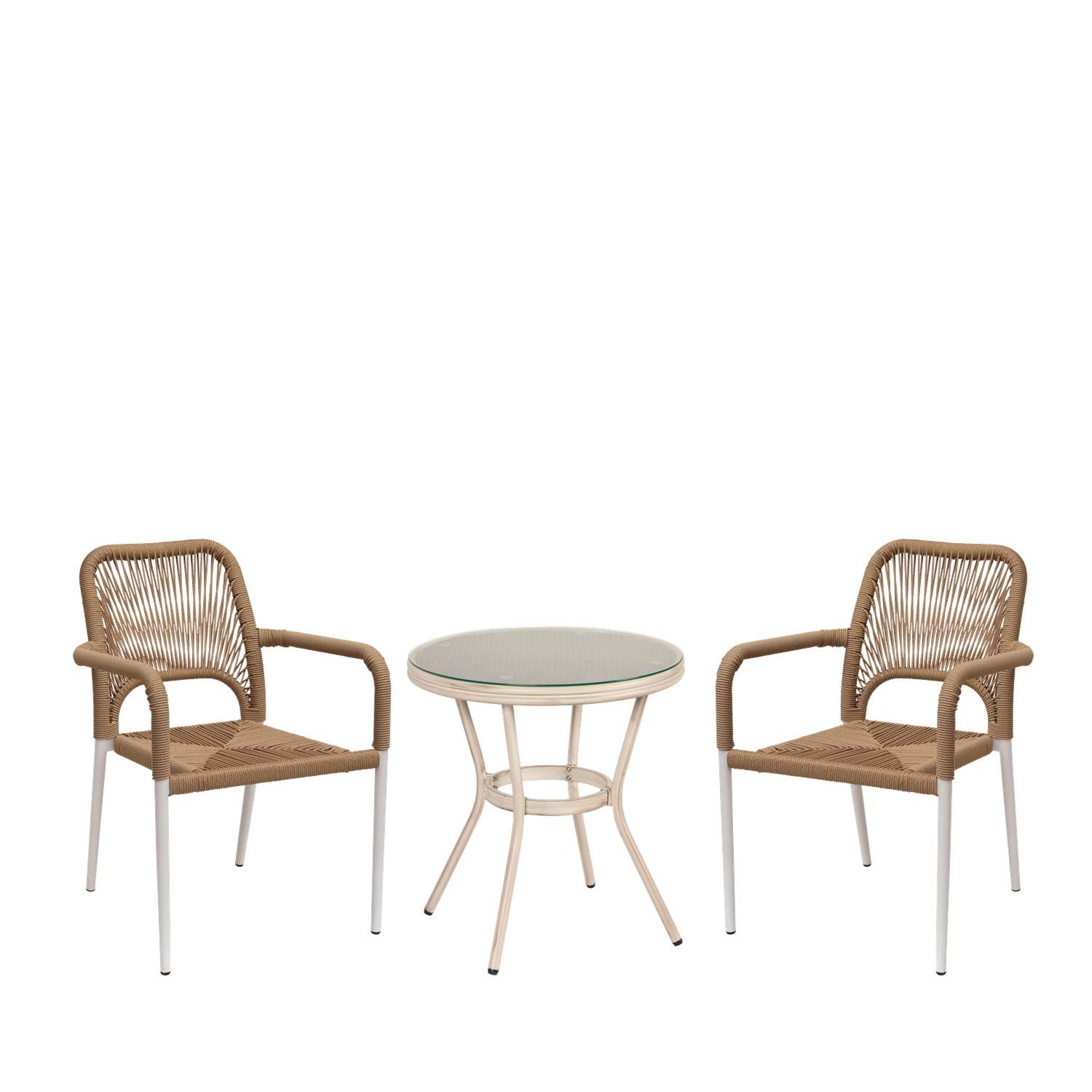 Σετ Τραπεζαρία Κήπου BURUNDI Λευκό Αλουμίνιο/Γυαλί Με 2 Πολυθρόνες 14990269