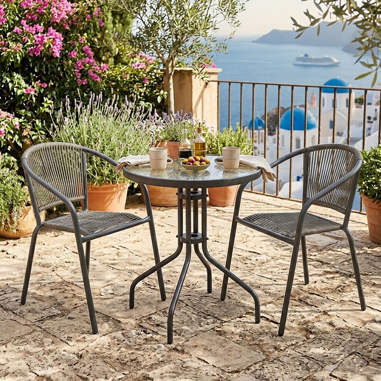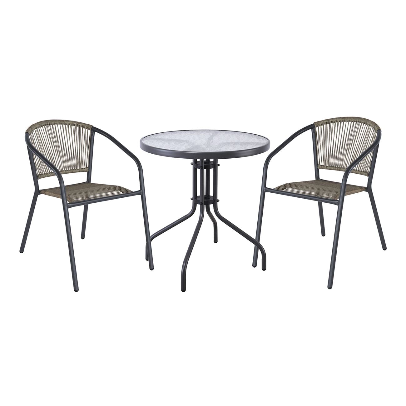 PATTY Set Κήπου - Βεράντας: Τραπέζι + 2 Πολυθρόνες Μέταλλο Βαφή Ανθρακί, PE Rattan Γκρι