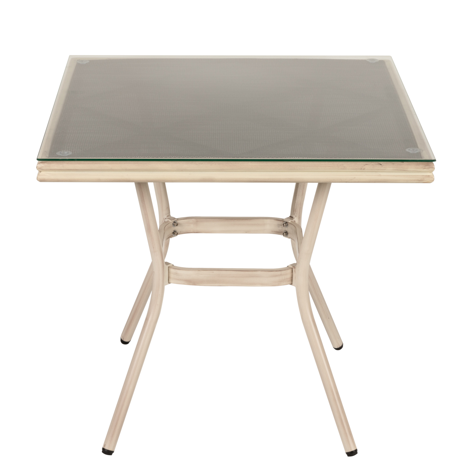 Τραπέζι Κήπου ANGOLA Λευκό Αντικέ Αλουμίνιο/Γυαλί 80x80x75cm