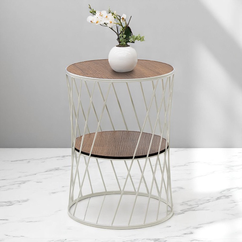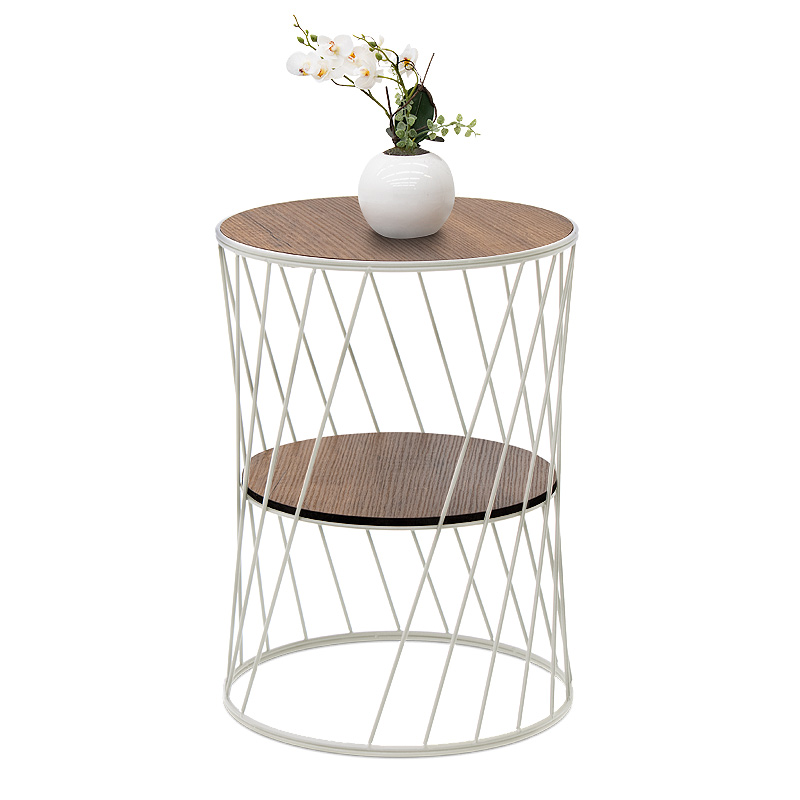 Βοηθητικό τραπεζάκι Jaspin μεταλλικό - Mdf χρώμα λευκό - καρυδί 32x32x44εκ.