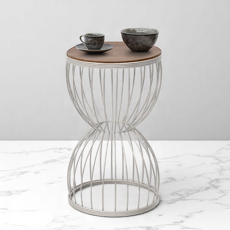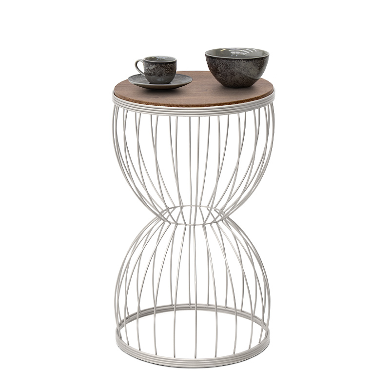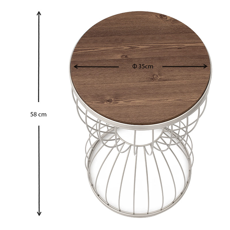 Βοηθητικό τραπεζάκι Pino μεταλλικό - Mdf χρώμα λευκό - καρυδί 35x35x58εκ.