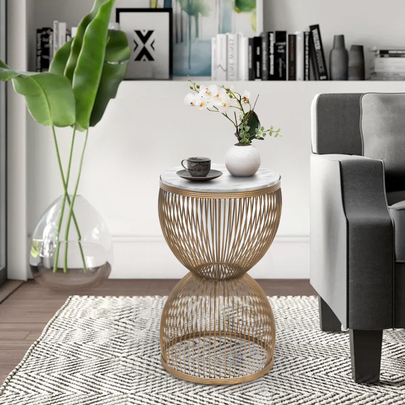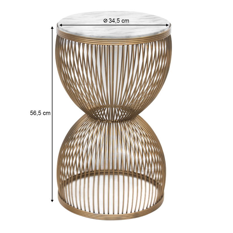 Τραπεζάκι βοηθητικό Stella μεταλλικό - Mdf χρώμα χρυσό - λευκό εφέ μαρμάρου Ø34,5x56,5εκ.
