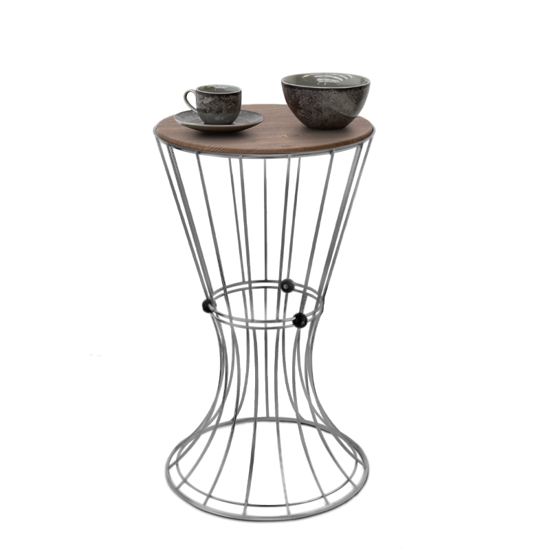 Βοηθητικό τραπεζάκι Girene μεταλλικό - Mdf χρώμα ασημί - καρυδί 32x32x58εκ.