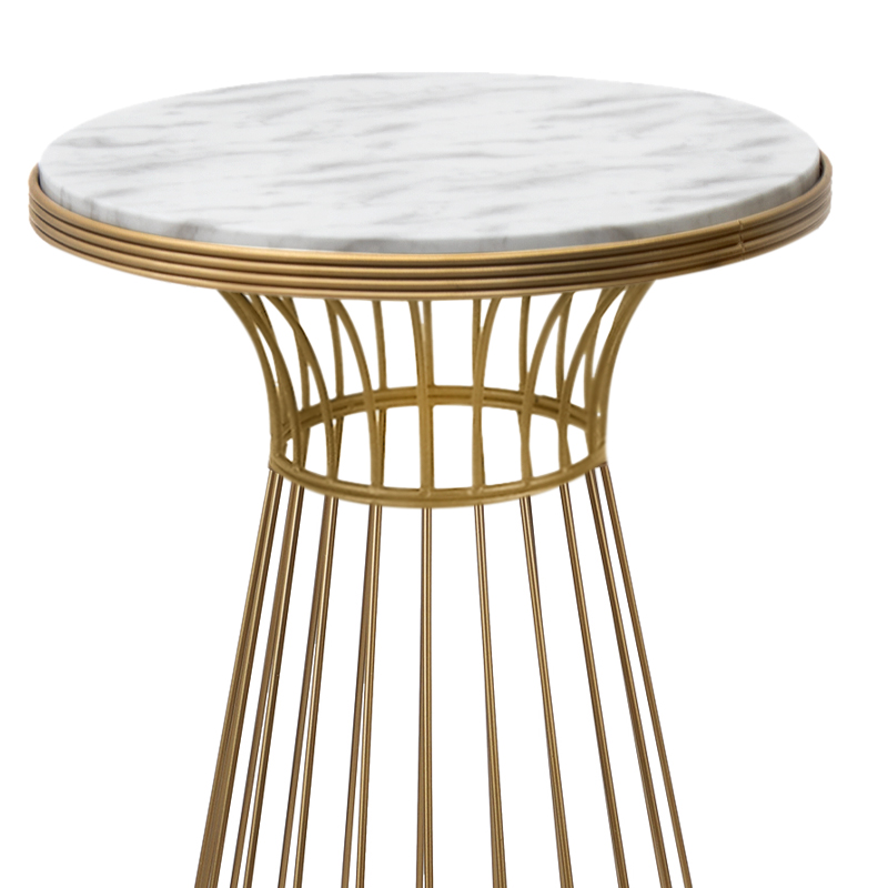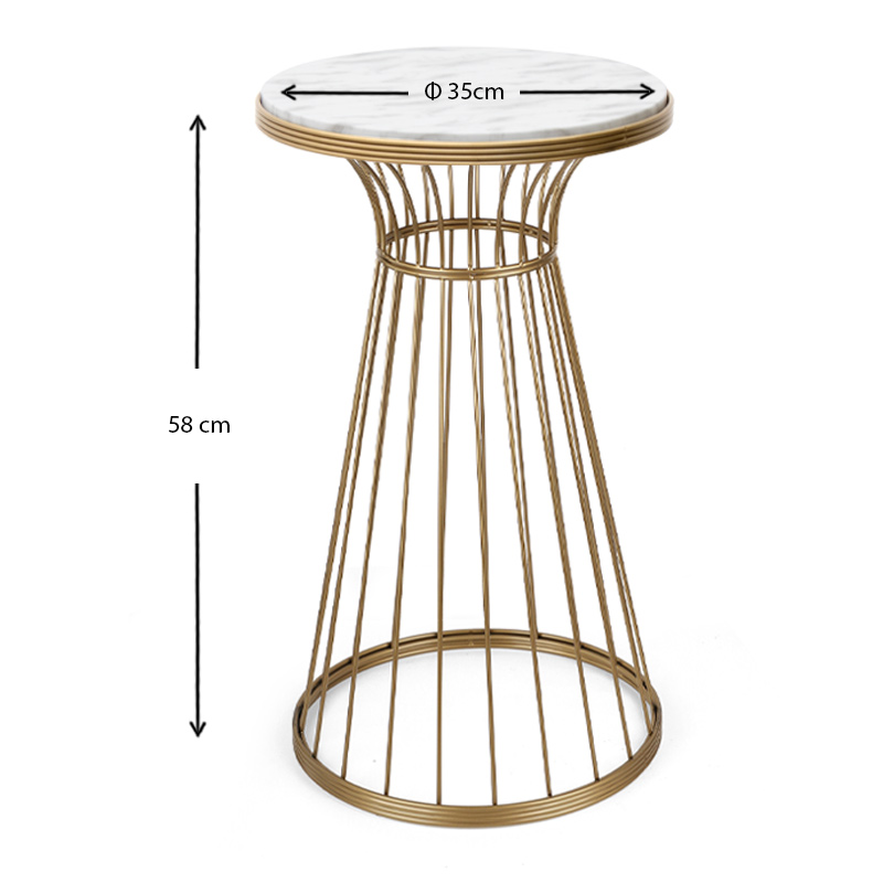 Βοηθητικό τραπεζάκι Tekosi μεταλλικό - Mdf χρώμα χρυσό - λευκό εφέ μαρμάρου 35x35x58εκ.
